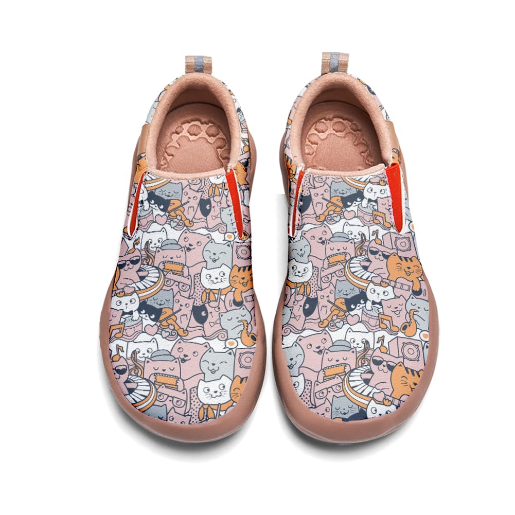 【 Preferred Materials 】: The sneakers for girls is lightweight fabric ,gentle and kind on sensitive skin,which can reduce the burden on the feet; the fabric of the shoes is soft and comfortable, skin-friendly and breathable, not abrasive. 【Funny Designs 】-Girls School Shoes,with a slip-on de