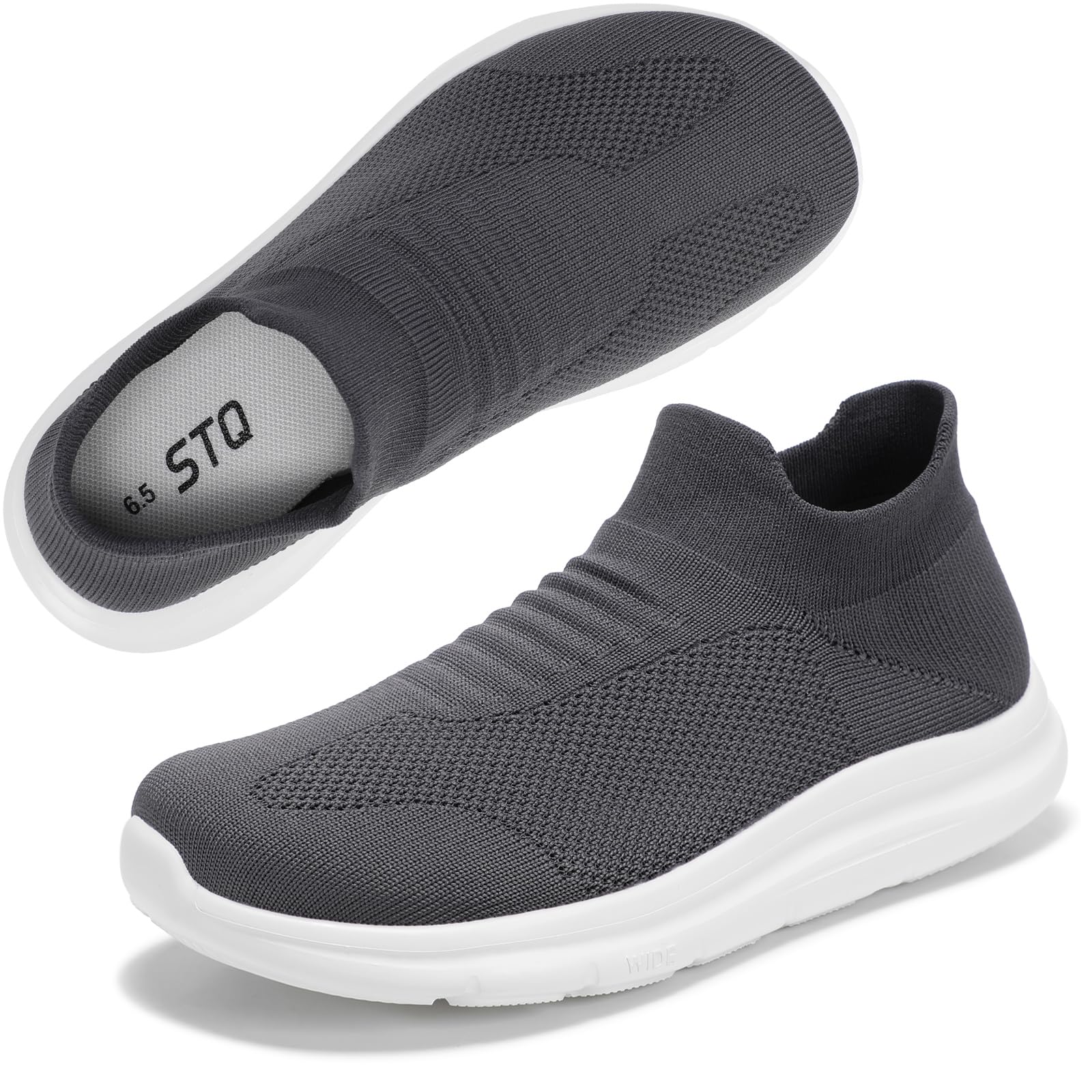 STQ Wide Toe Box Walking Shoes Women : Sock Orthopedic Slip On Shoe, Non-Slip Comfort Mesh Diabetic Sneakers for Plantar Fasciitis Relief, Bunions