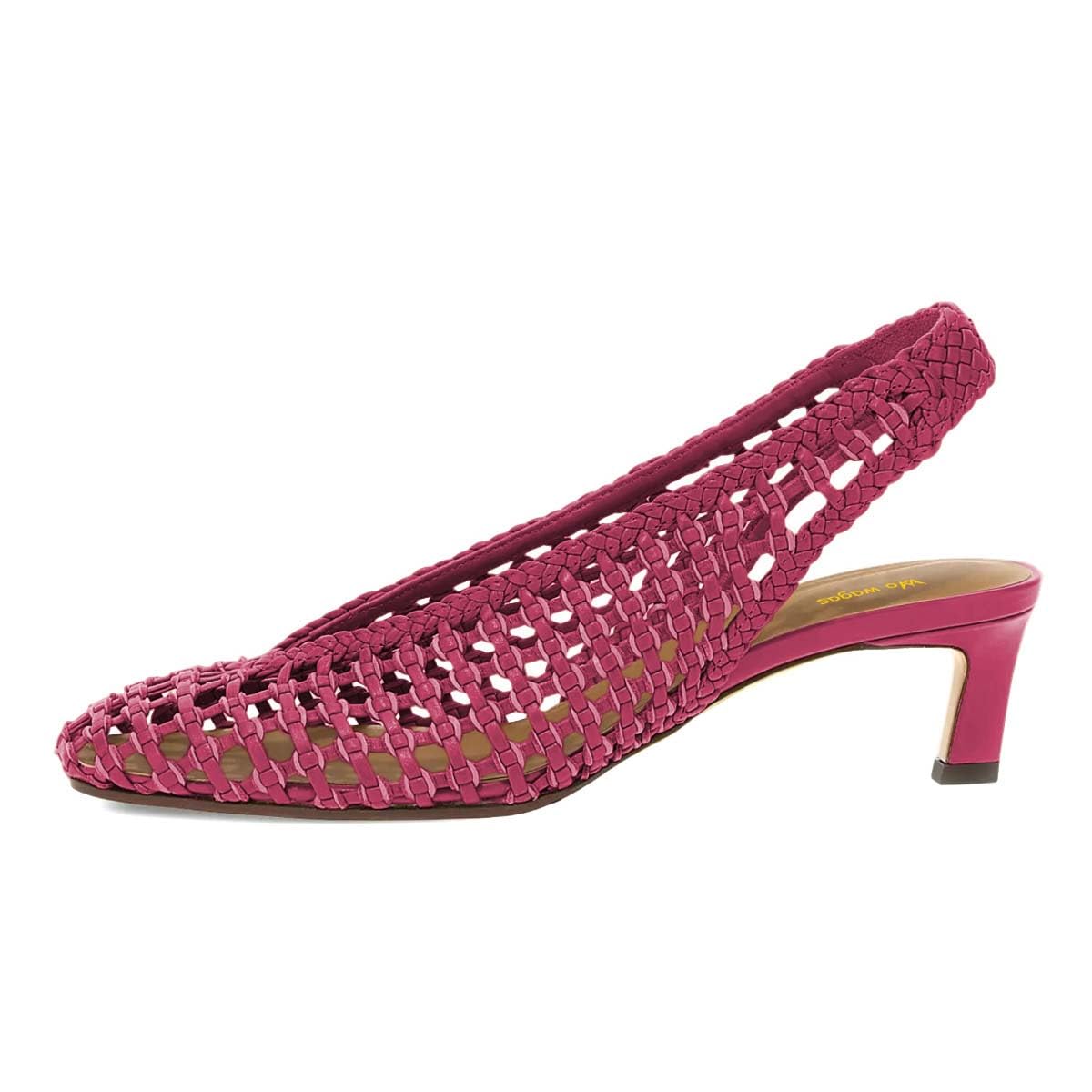 wo wagas Women's Slingback Strap Square Toe Pump Slip On Low Kitten Heels Woven Sandals Summer Daily Dress Shoe Size 4-16 US