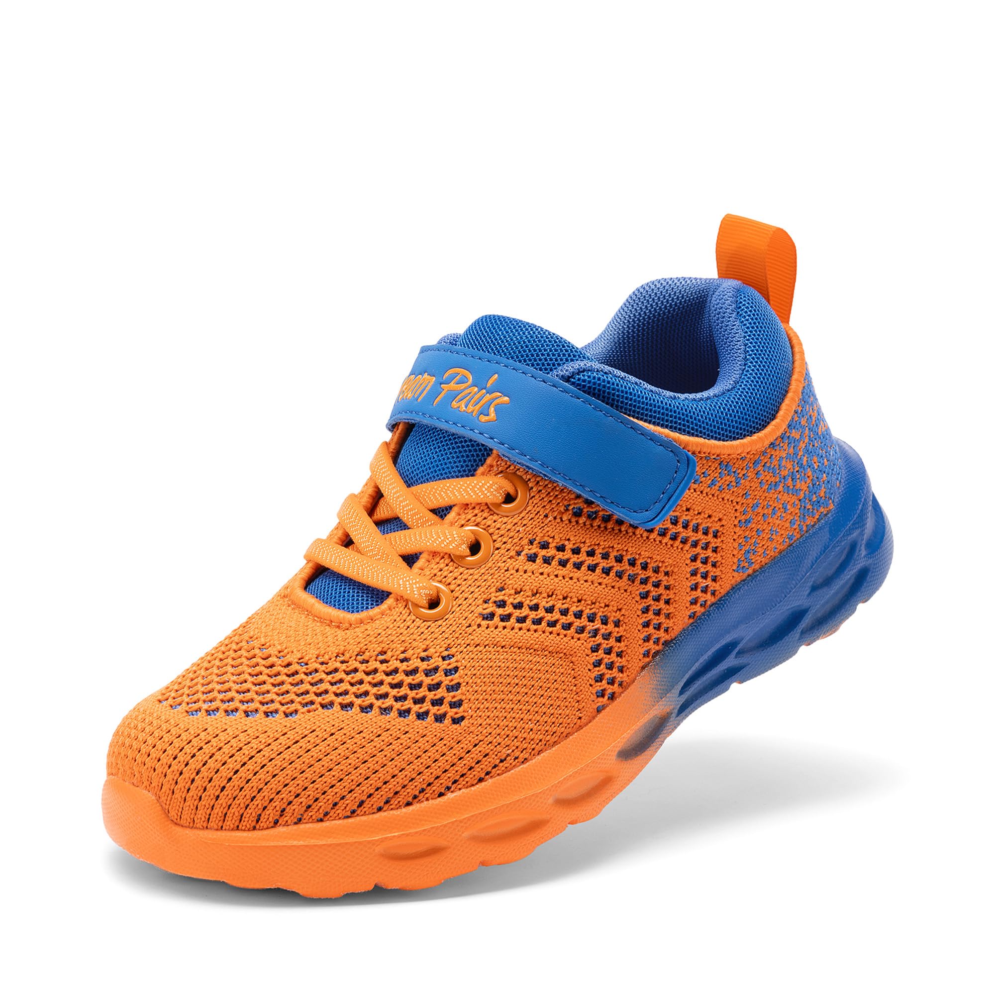 Breathable Design: Keeps little feet comfy and fresh all day. These kids' running shoes feature a breathable knit upper and mesh lining. Hook-and-Loop Strap: Makes it easy for kids to put on and take off themselves. These shoes for boys are a convenient choice. Padded Collar: Reduces friction during