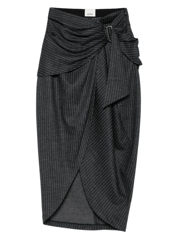 Women's Isabel Marant Reilly Skirt - Black - Mid length skirts Reilly Striped Virgin Wool Pencil Skirt Draped waist with buckle detail Concealed back zip fastening Fitted fit with asymmetric bottom hem 86% LAINE VIERGE 14% COTON Made in: PL SKU:...