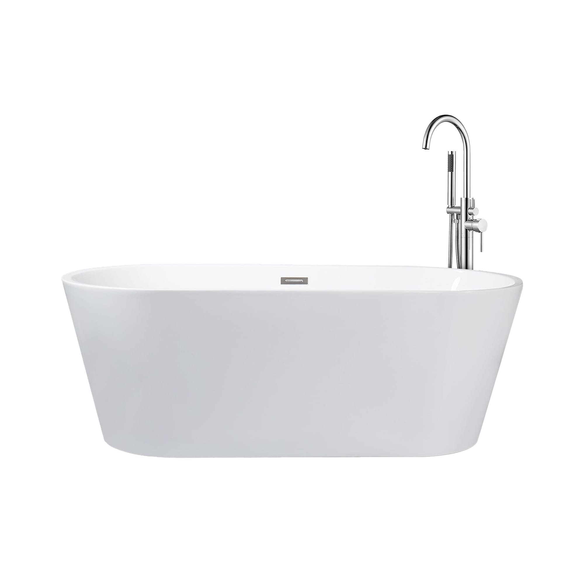 Melina White Freestanding Acrylic Flatbottom Soaking Bathtub with Chrome Hardware and Lago Tub Filler