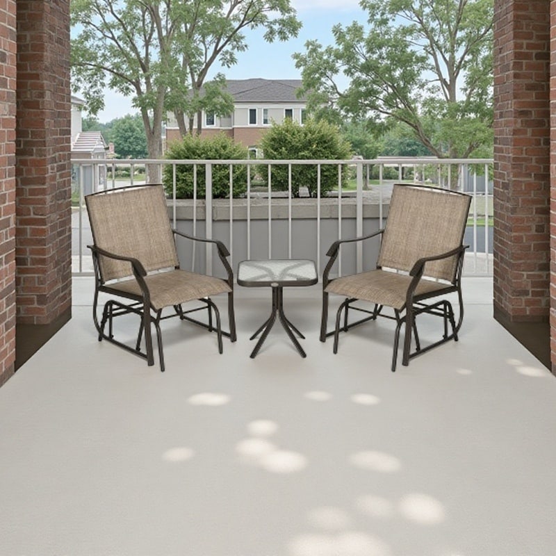 Relax in comfort and style with this 3-piece outdoor rocker set, designed for two. Perfect for patios, porches, and garden spaces, this set includes two smooth-gliding chairs and a convenient side table with a wipe-clean glass top.