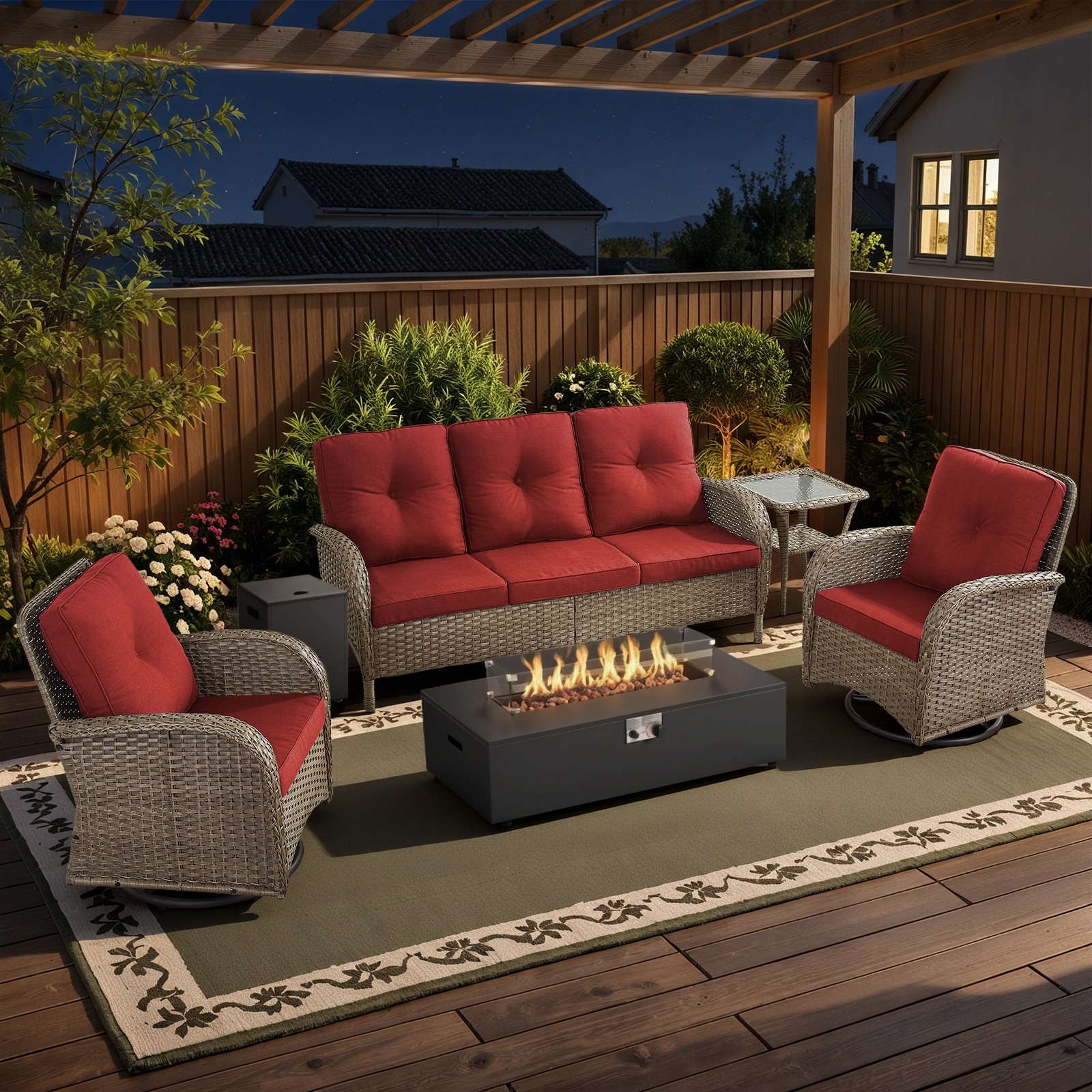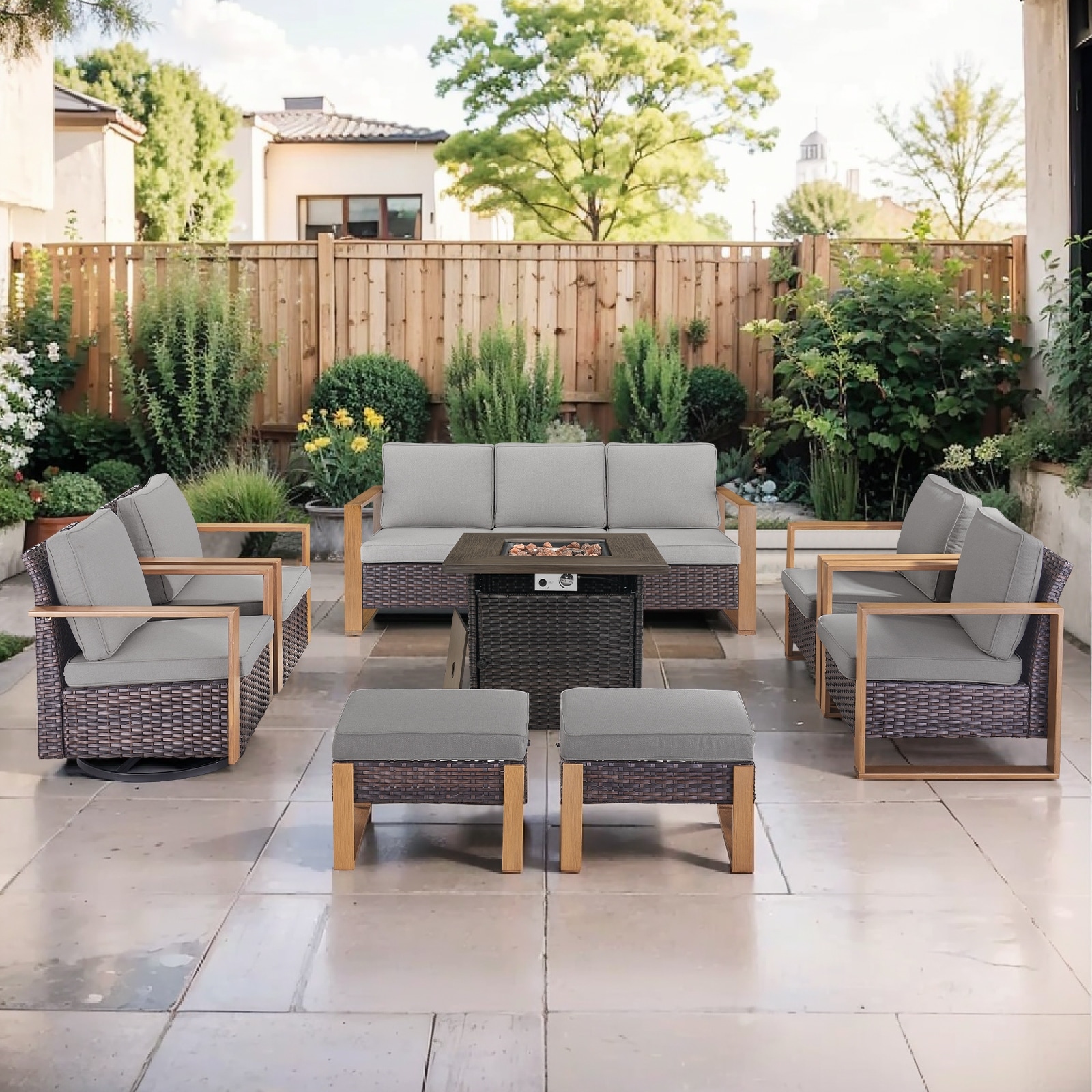 5-Piece Sofa Swivel Chairs with 30" Firepit Table