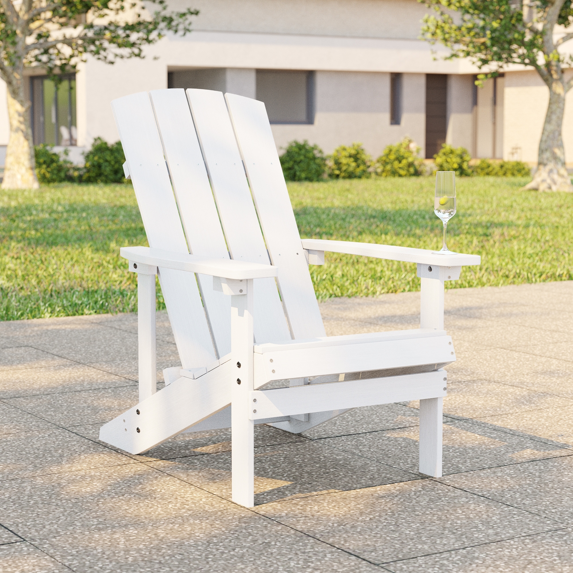 Grab your favorite drink and phone and relax on the porch while enjoying the sunset or reading your favorite book on our charming Outdoor HPDE Foldable Adirondack Chairs with Cup Holder and Phone Holder set of two.