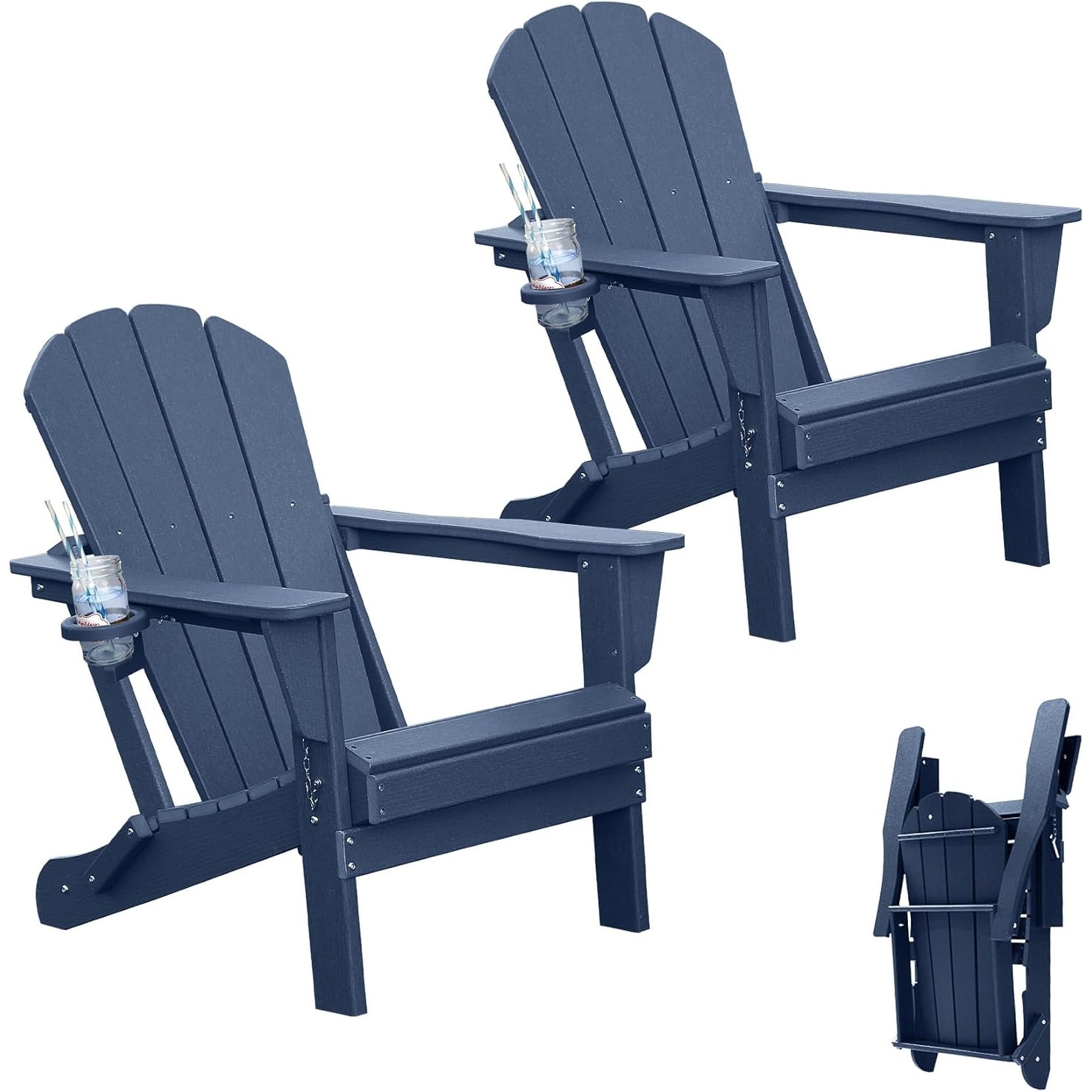 Plastic Adirondack Chairs Set of 2, HDPE Adirondack Chair, Folding Adirondack Chairs, Outdoor Chairs with Cup Holder