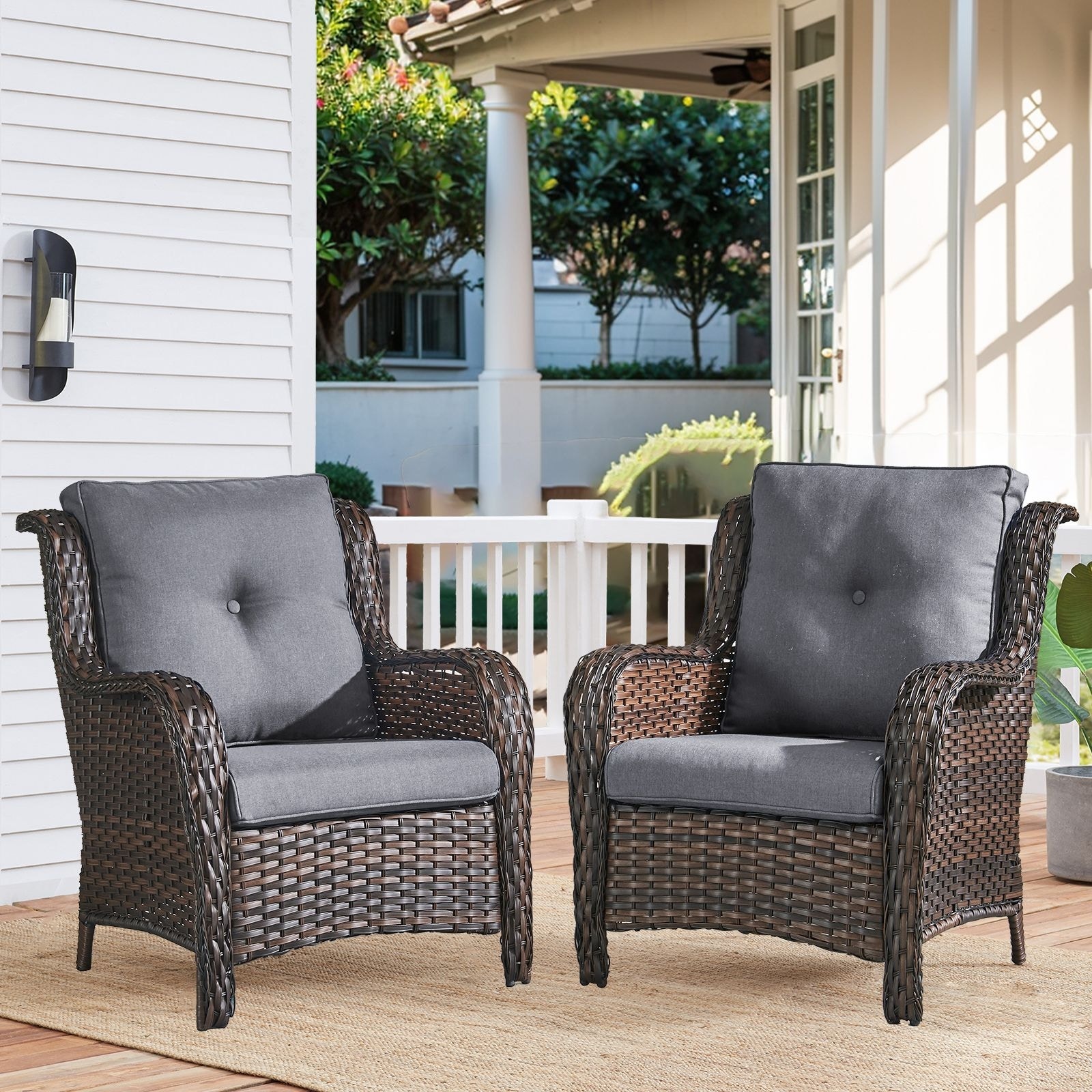 Outdoor Wicker High Back Club Chair Set of 2