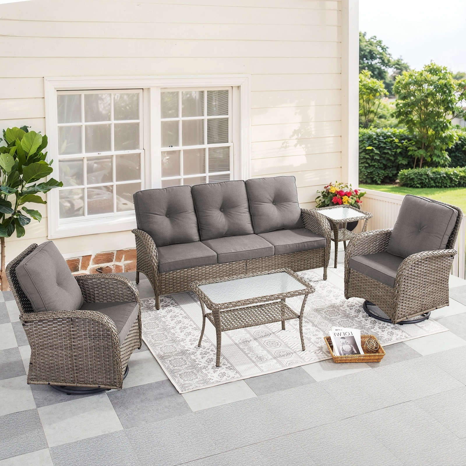 Pocassy Outdoor Sofa Patio Swivel Chairs Sets