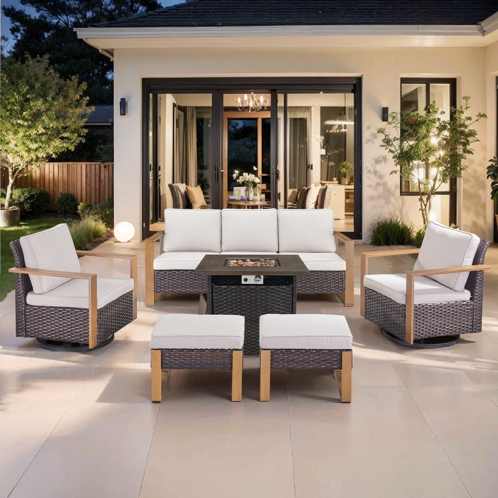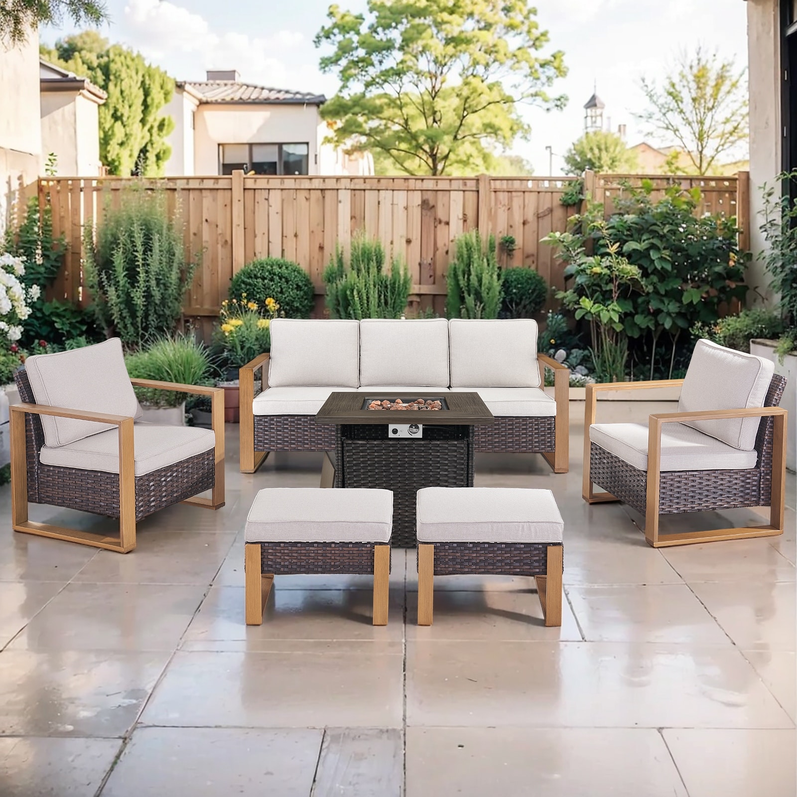 Pocassy 6 Pieces Fire Pit Table with Sofa Chairs