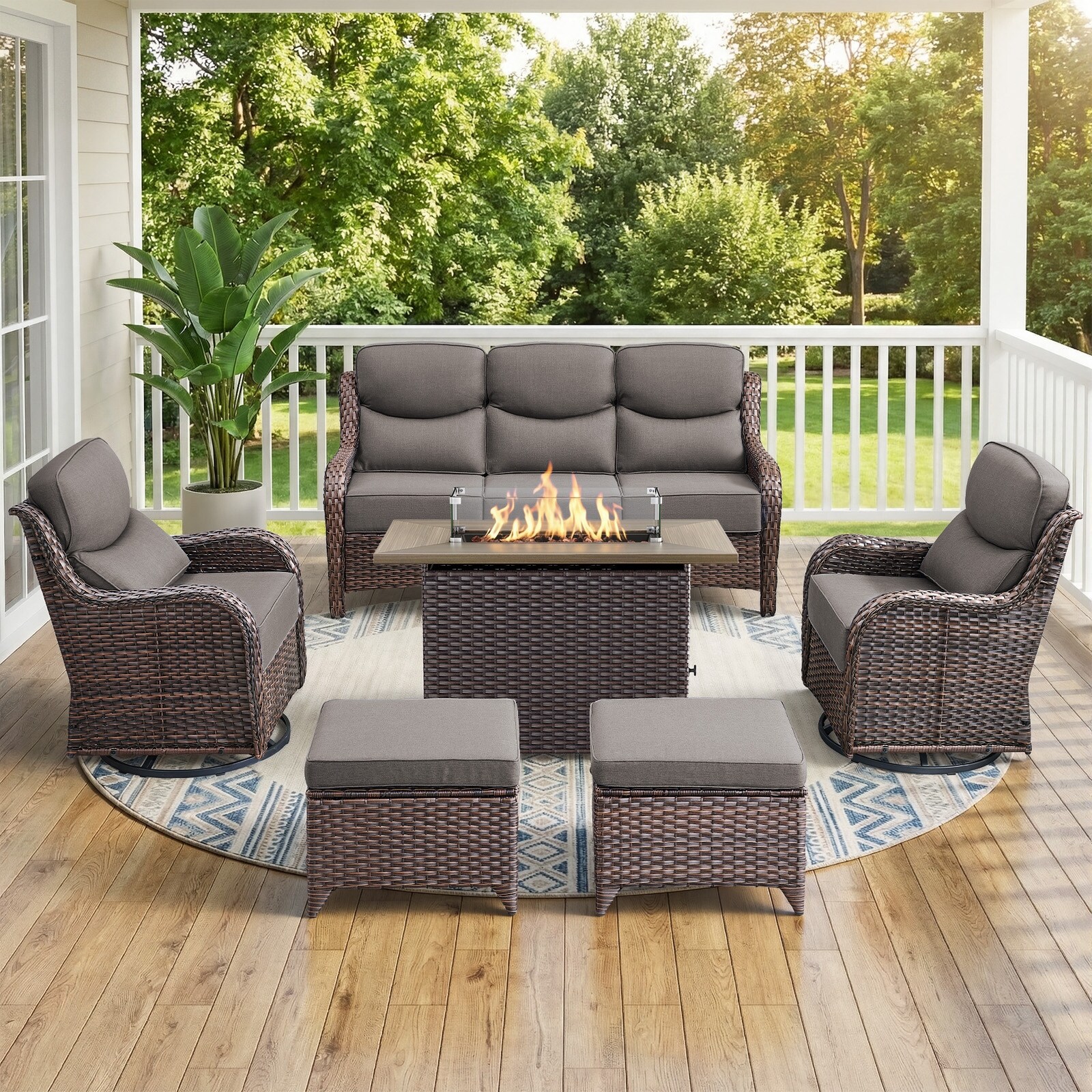 OVIOS 6 Pieces Patio Furniture Set with Fire Pit