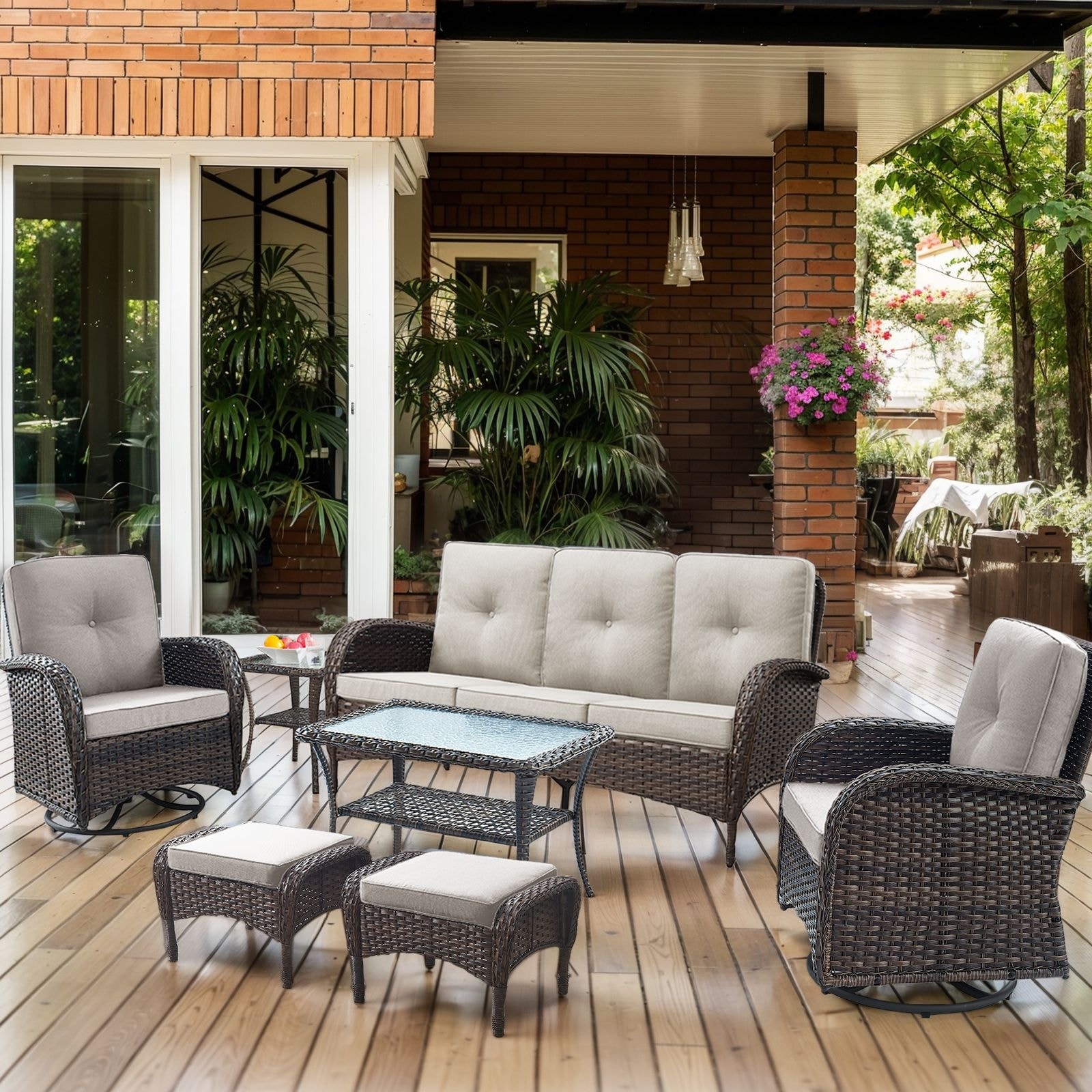 Pocassy Outdoor 7PCS 2-Seat Sofa Swivel Chairs Table Ottoman
