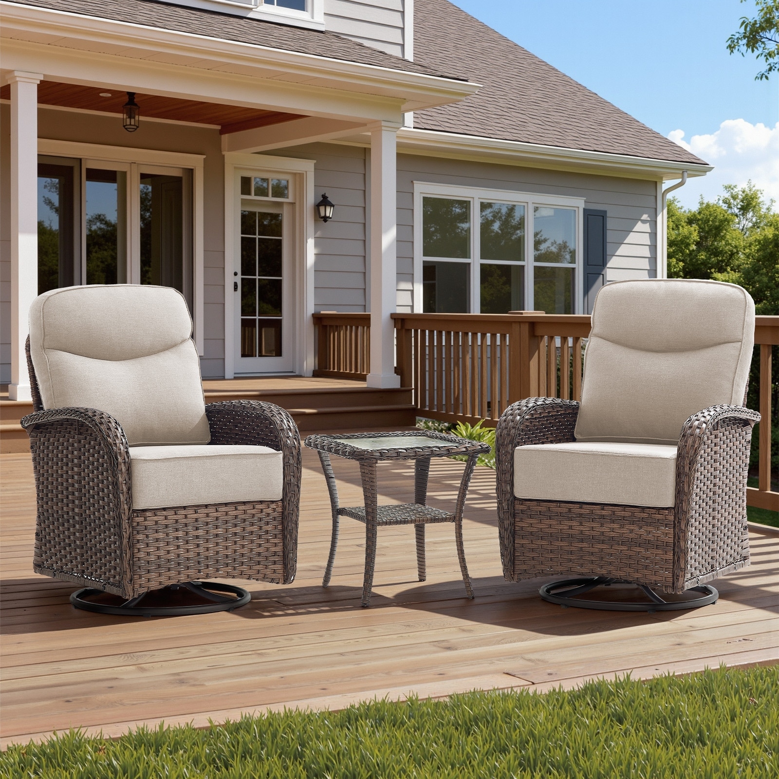 Meyreso 3-Piece Wicker Patio Swivel Glider Chairs with 6-Inch Thick Cushions and Side Table