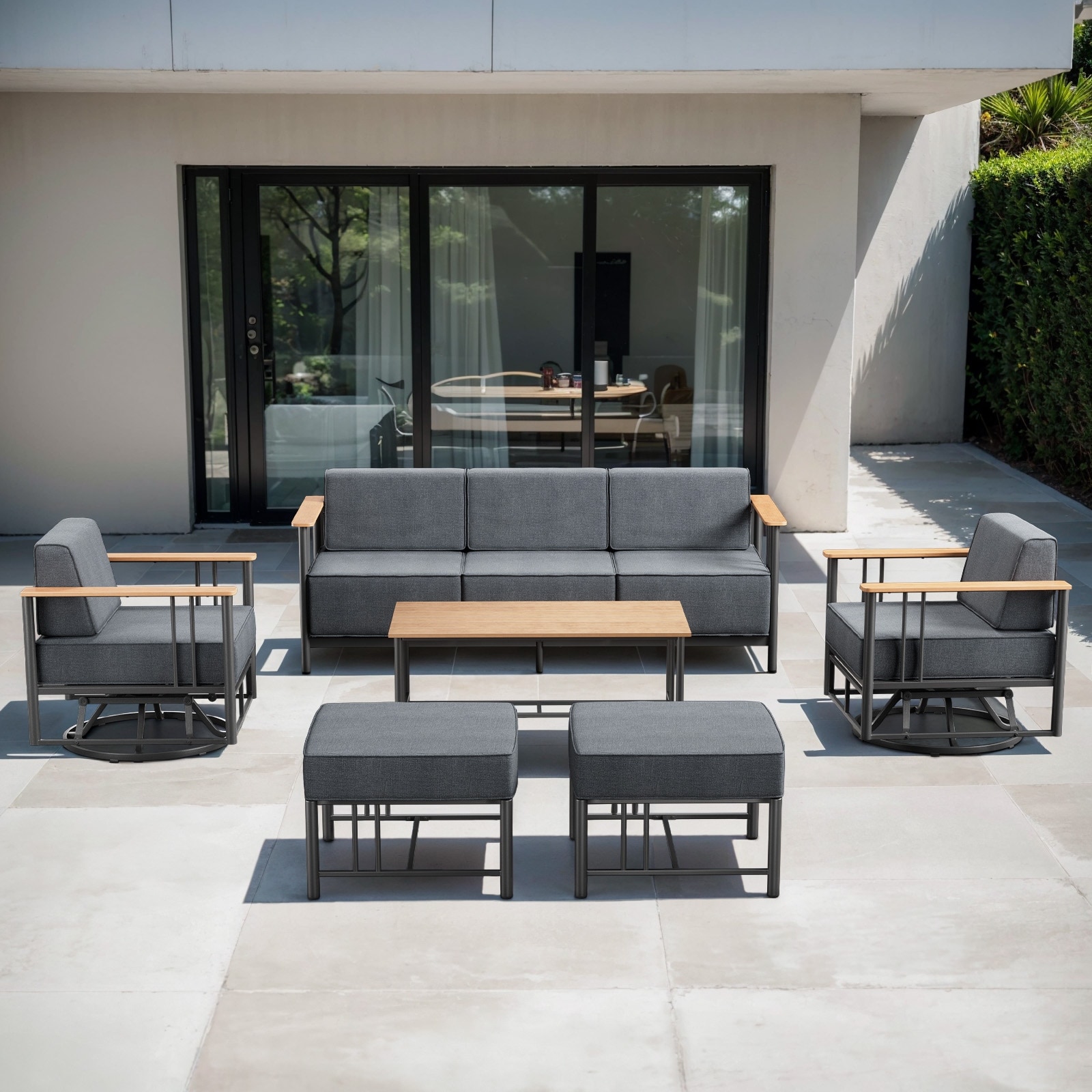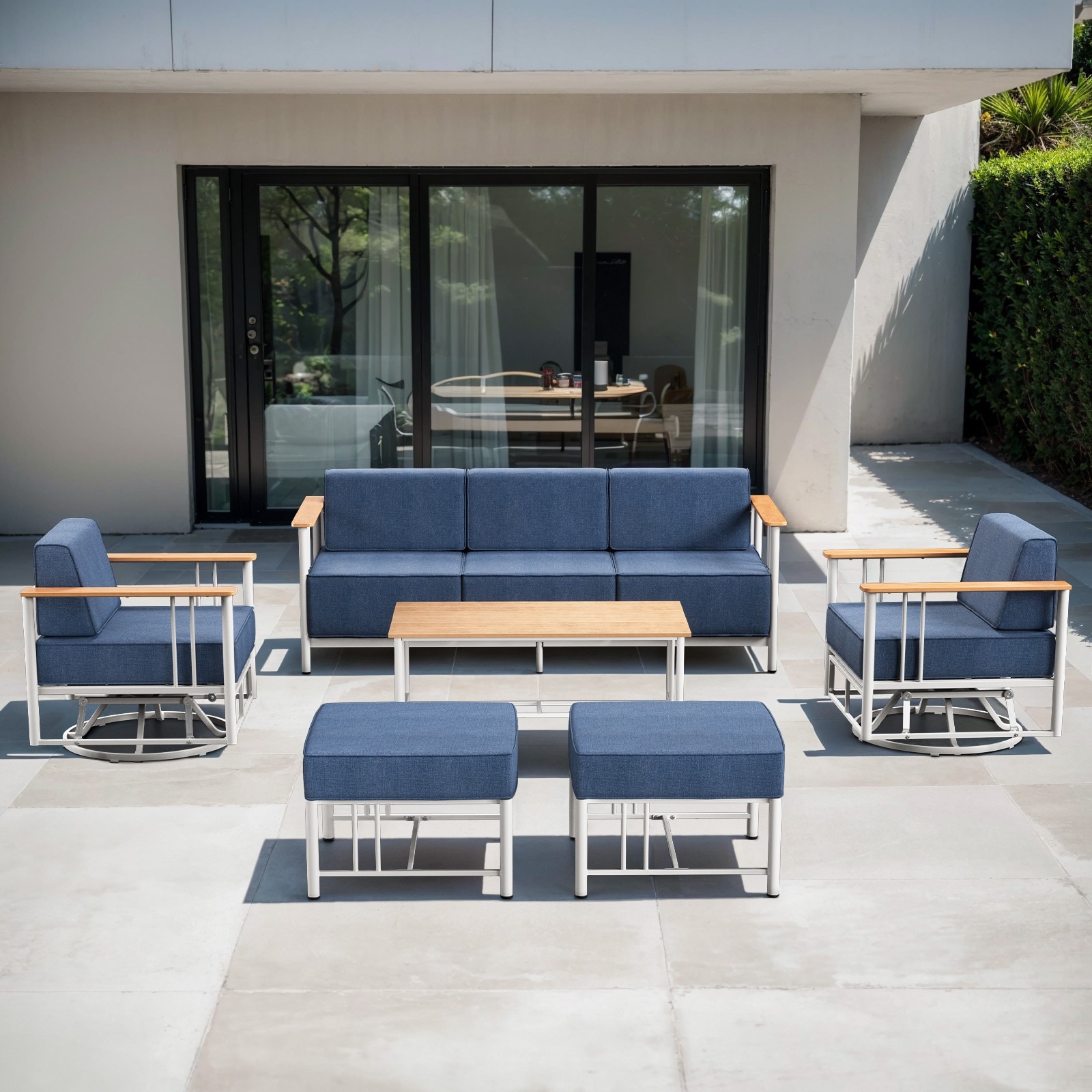 Pocassy Outdoor Swivel Chairs with Sofa Chair Ottoman and Table Set