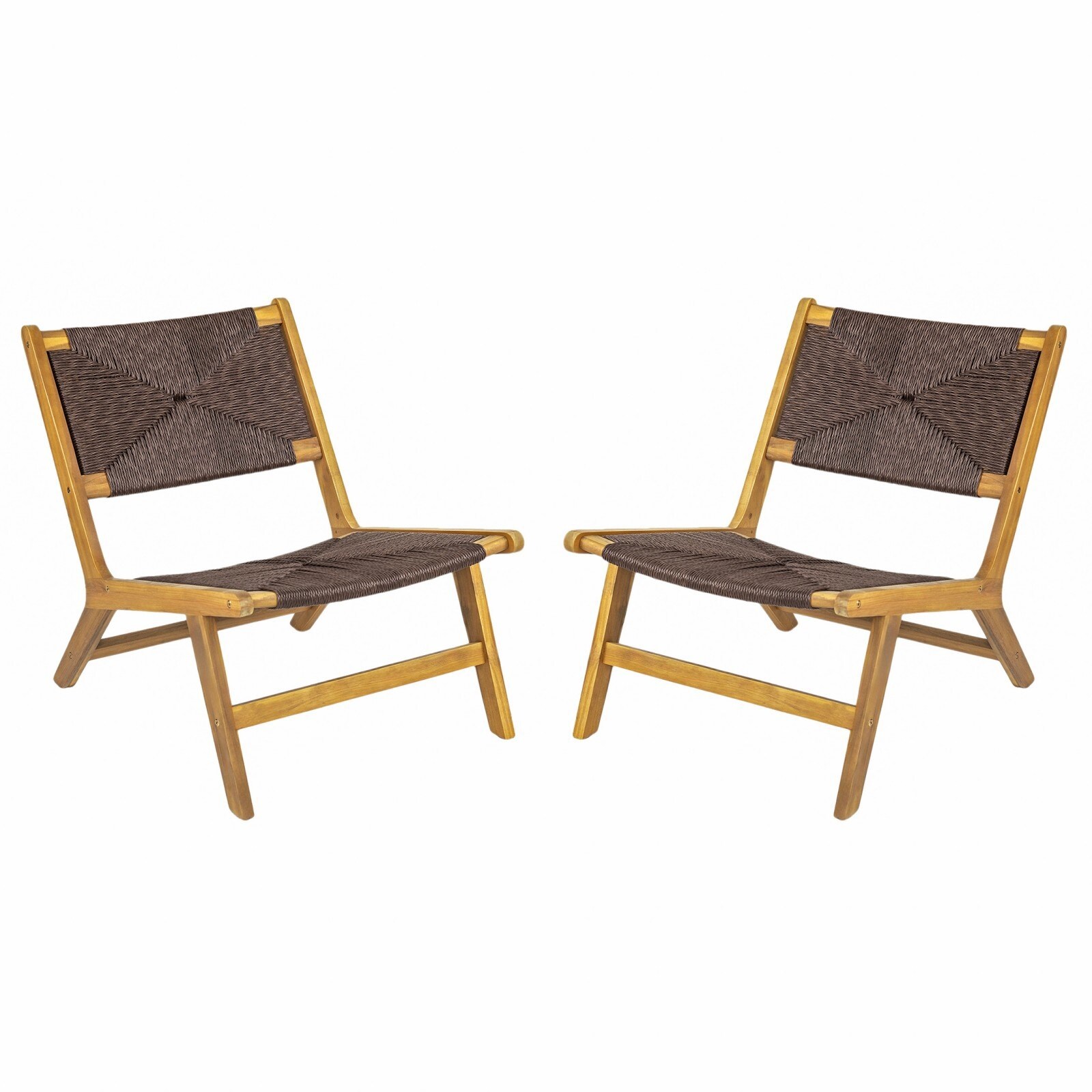 Description Limited Time Deal! Elevate Your Outdoor Space with 2-Piece Acacia & Teak Outdoor Armless Lounge Chairs! Crafted from durable solid hardwood, they naturally withstand the elements, paired with stylish dark brown PE wicker.