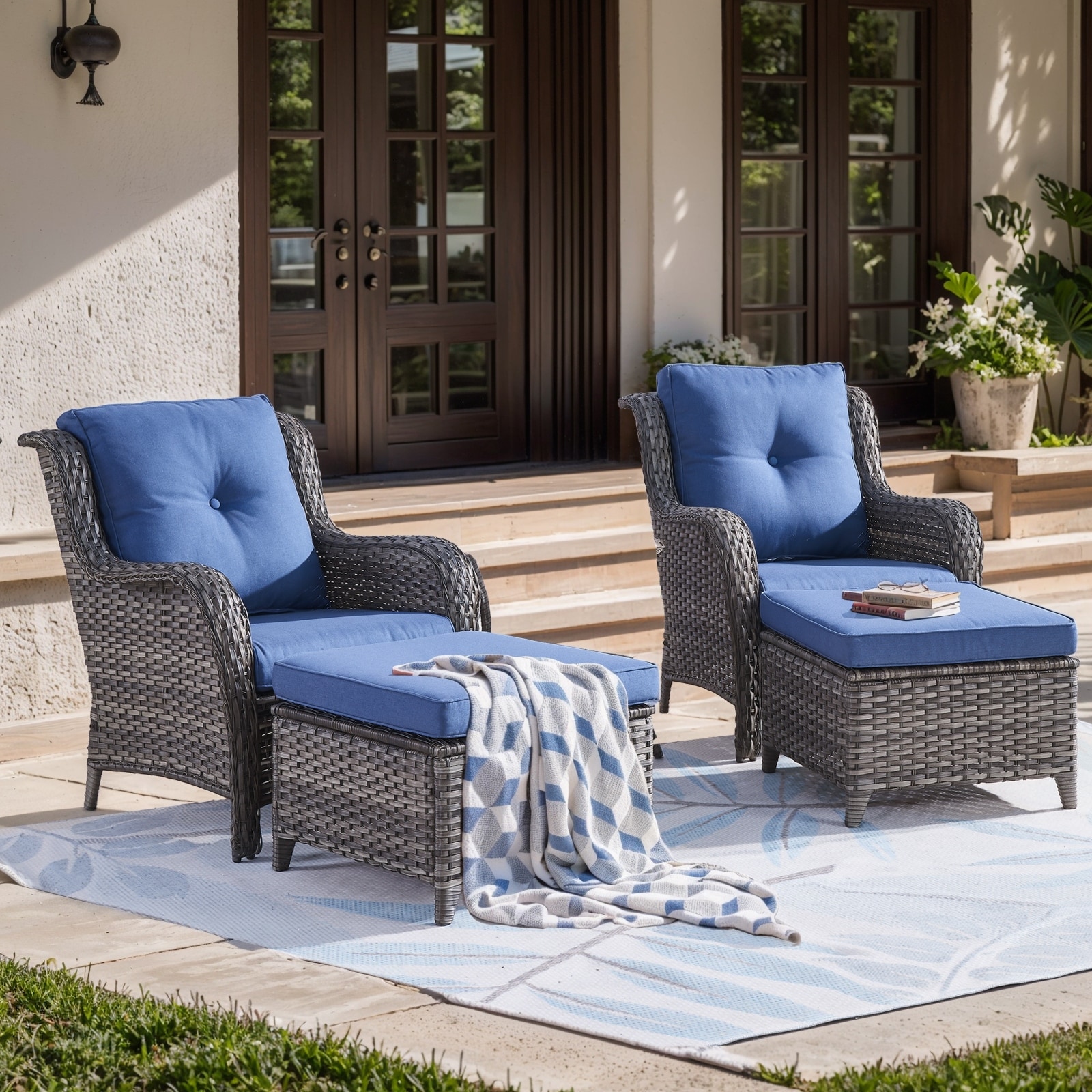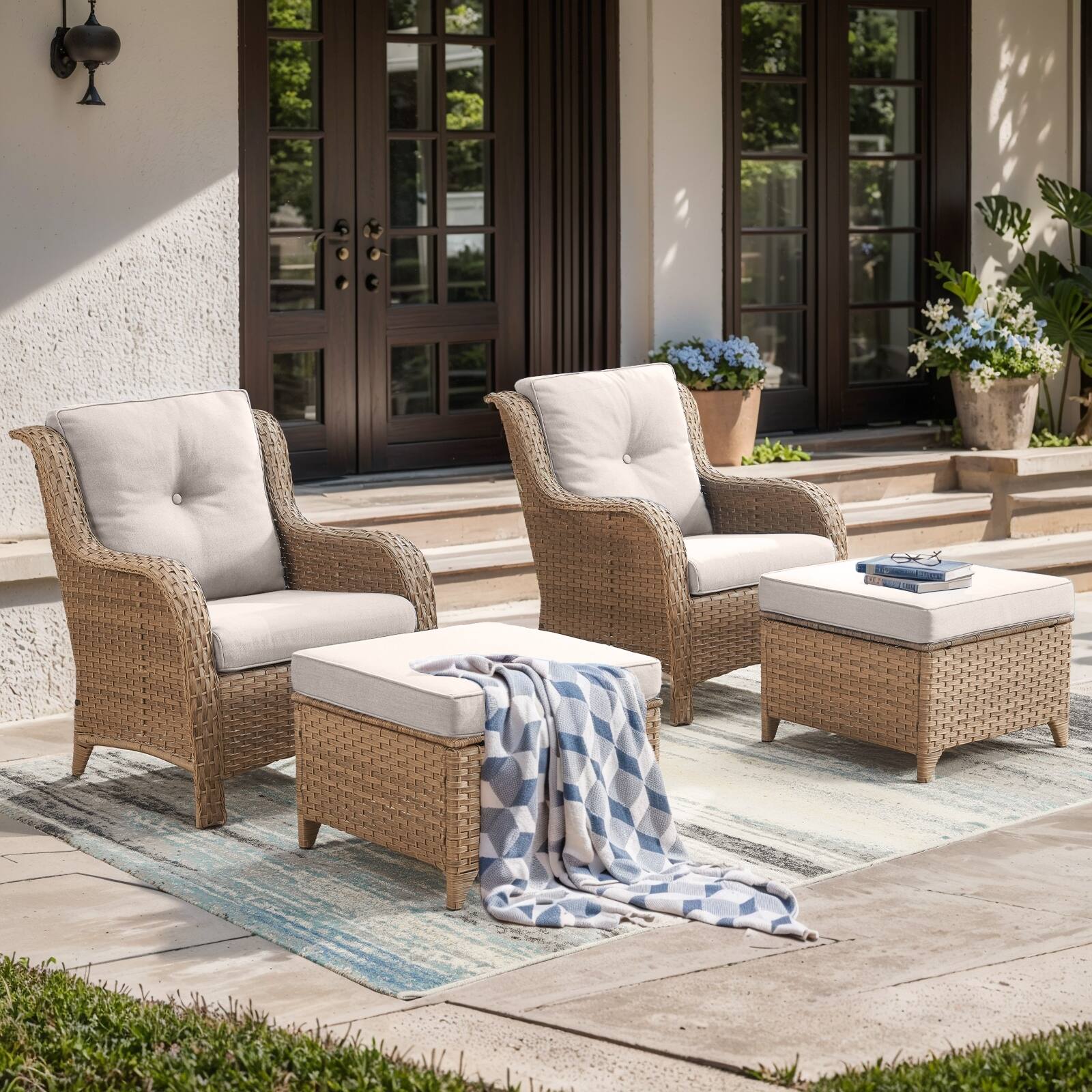 Pocassy Outdoor Patio Chairs Ottoman Table with 4 Inch Cushion