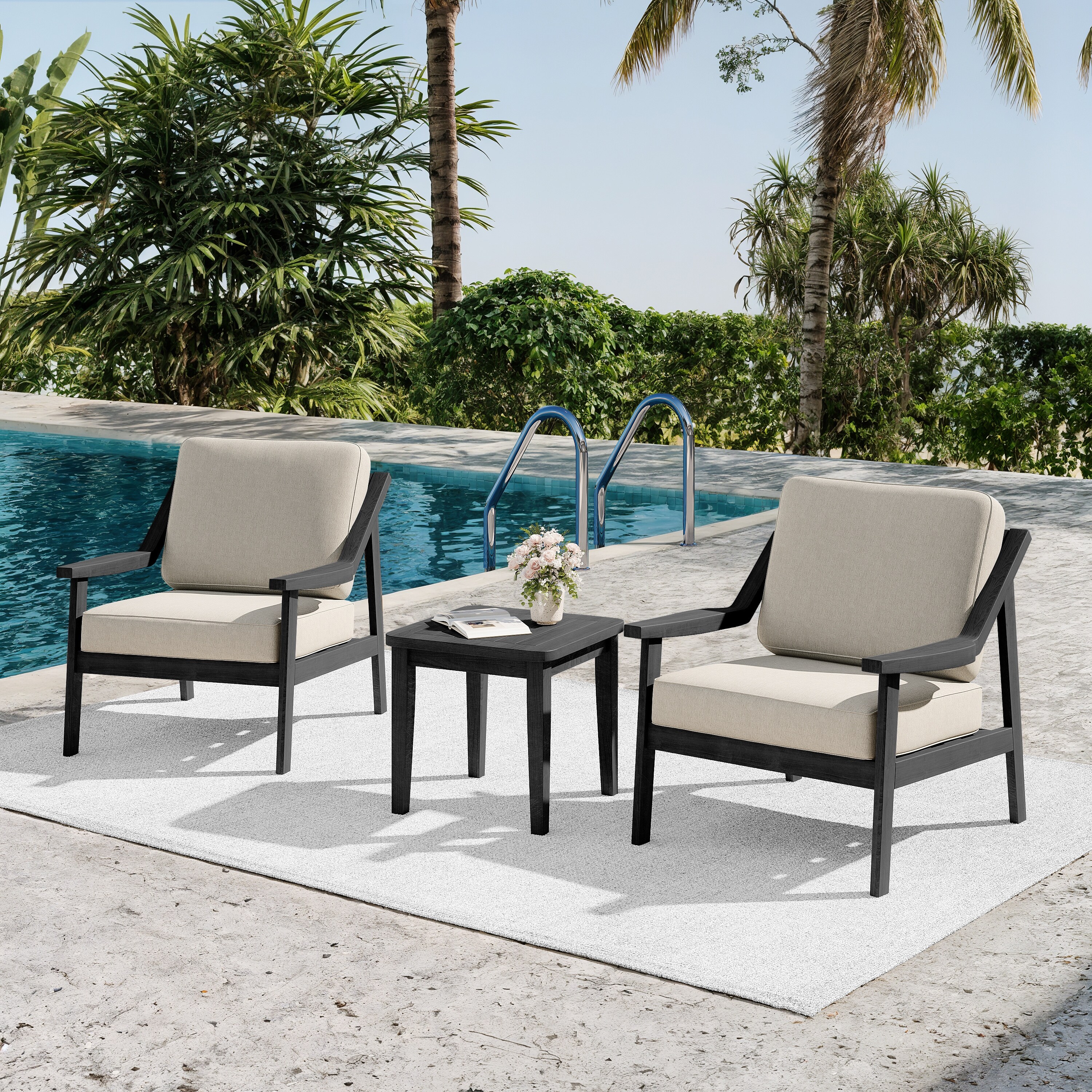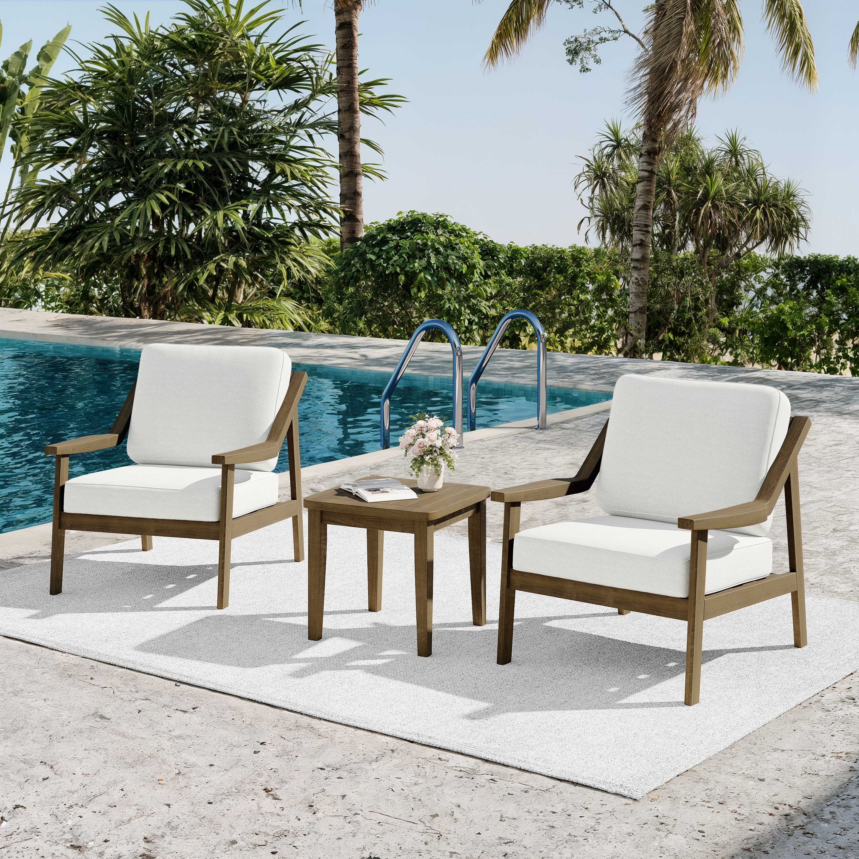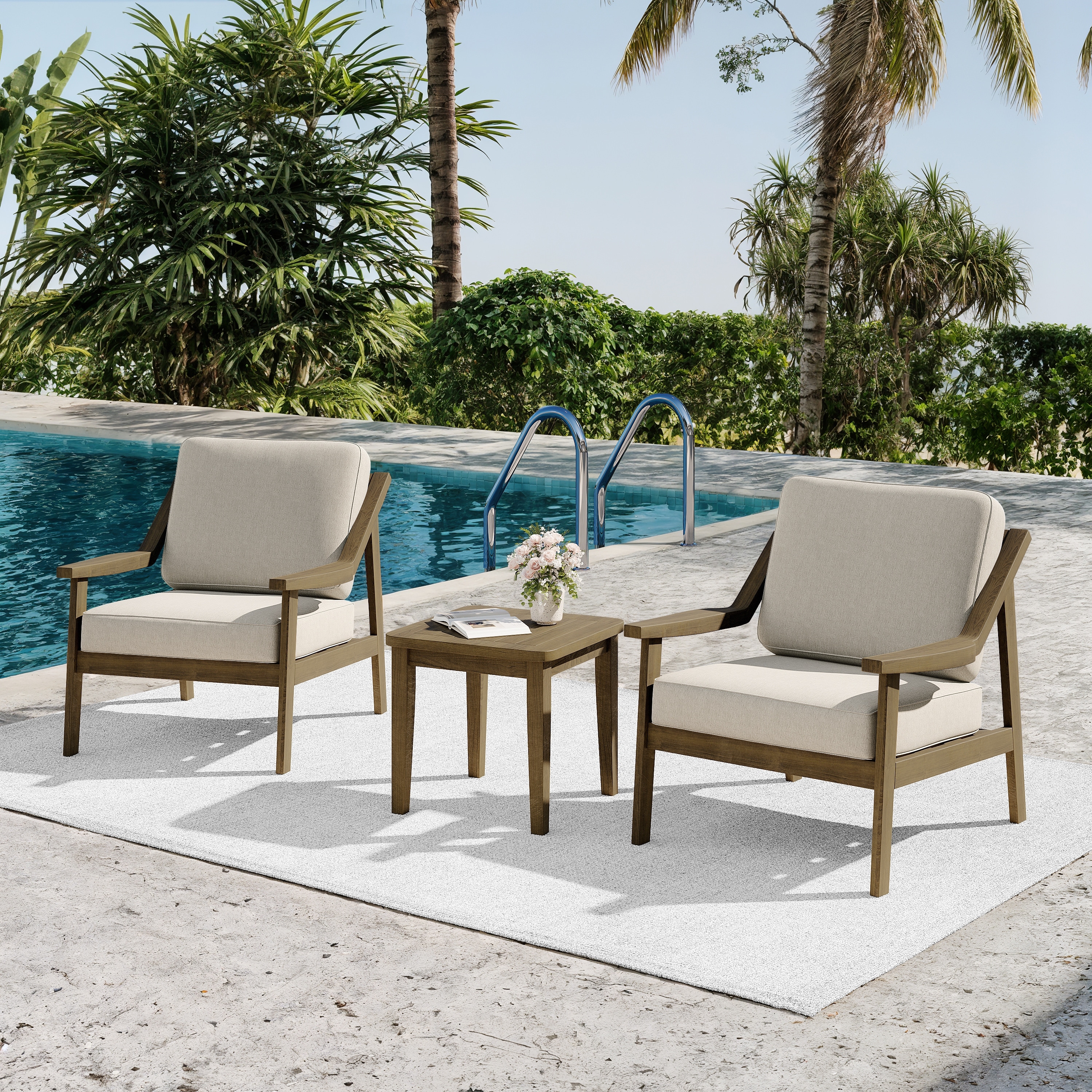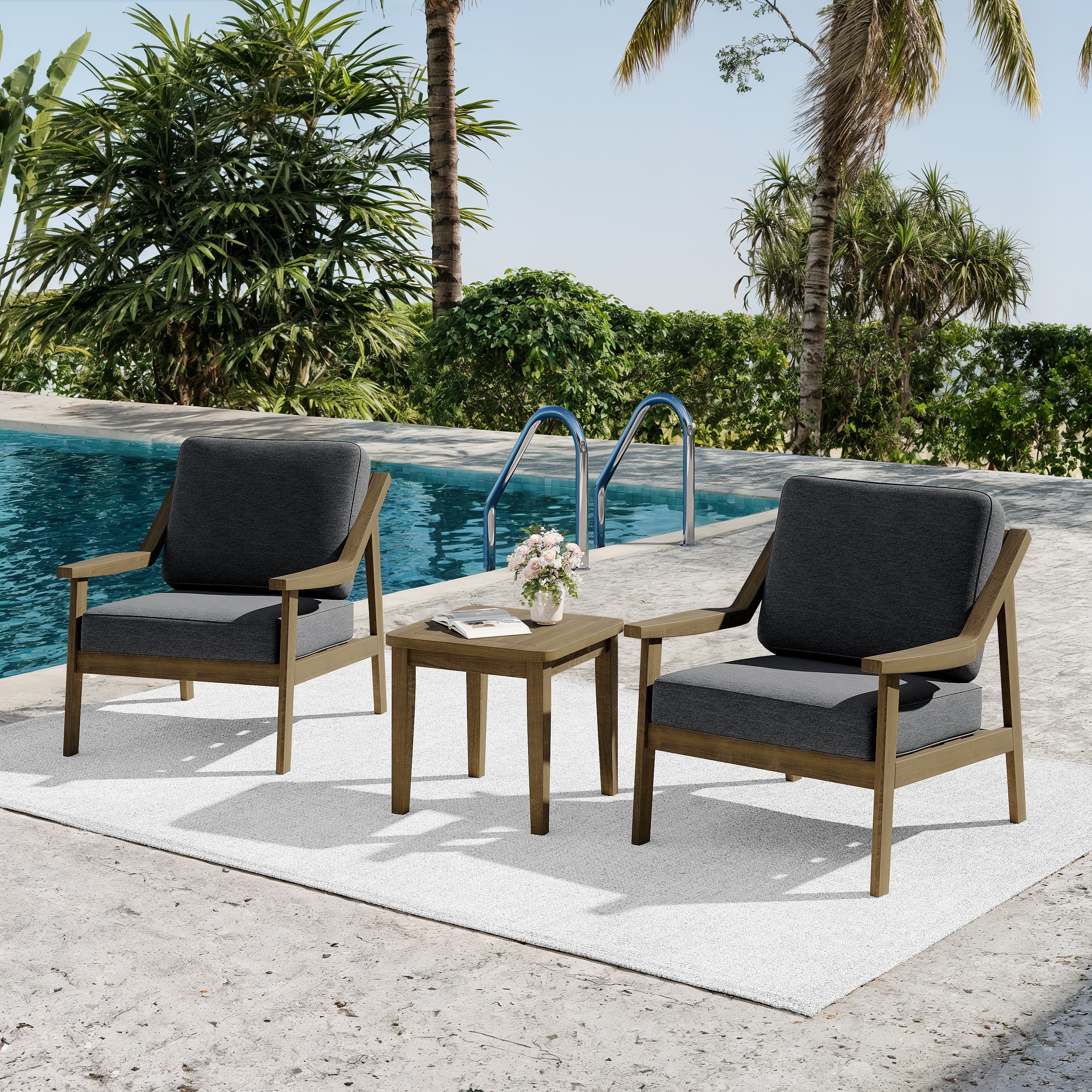 3-piece Teak Modern Cushioned Club Chairs Set Patio Bistro Set