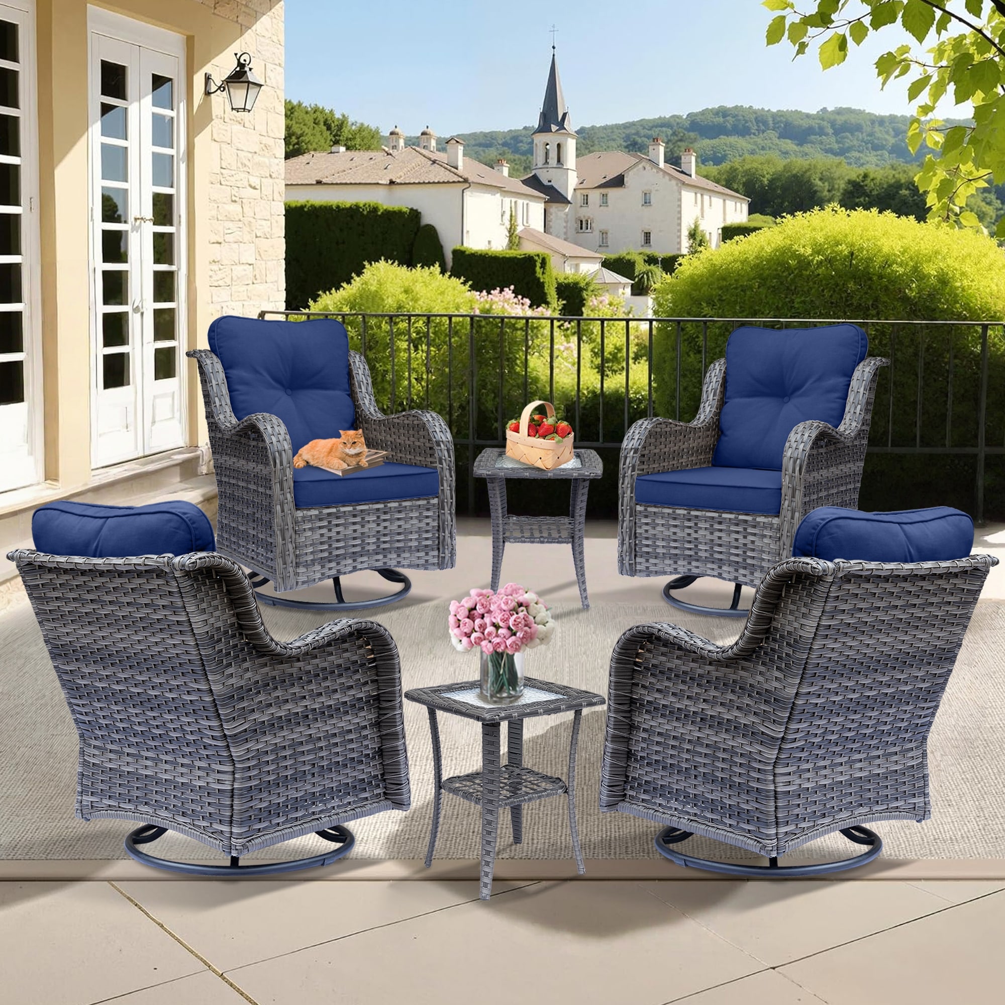 Pocassy Patio Swivel Chairs Glider Chairs with Ottoman and Table