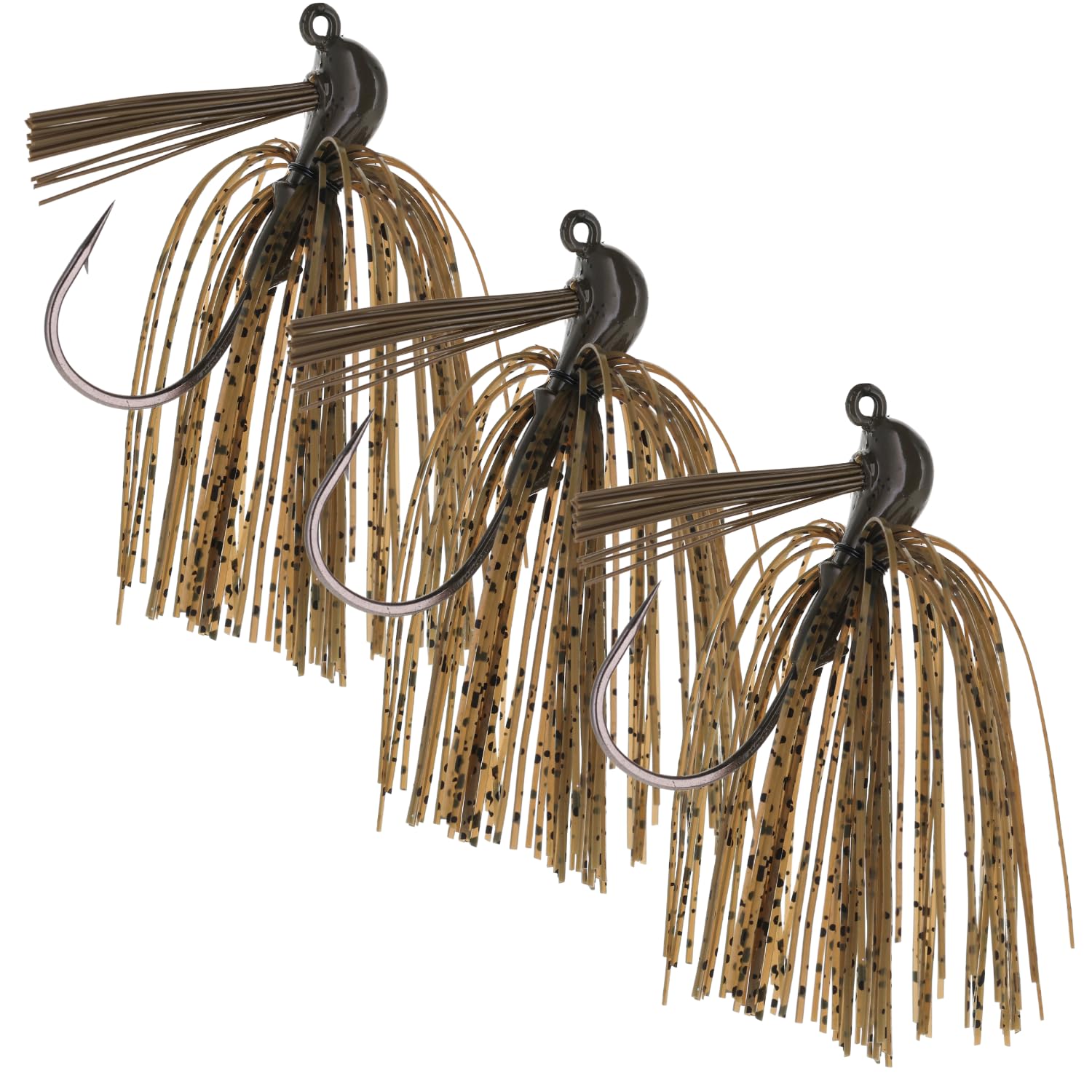Reaction Tackle Flipping Jigs for Bass Fishing β Weedless Design Fishing Jig Head Fishing Lures - Bass, Pike, Walleye, Muskie and More (3-Pack)