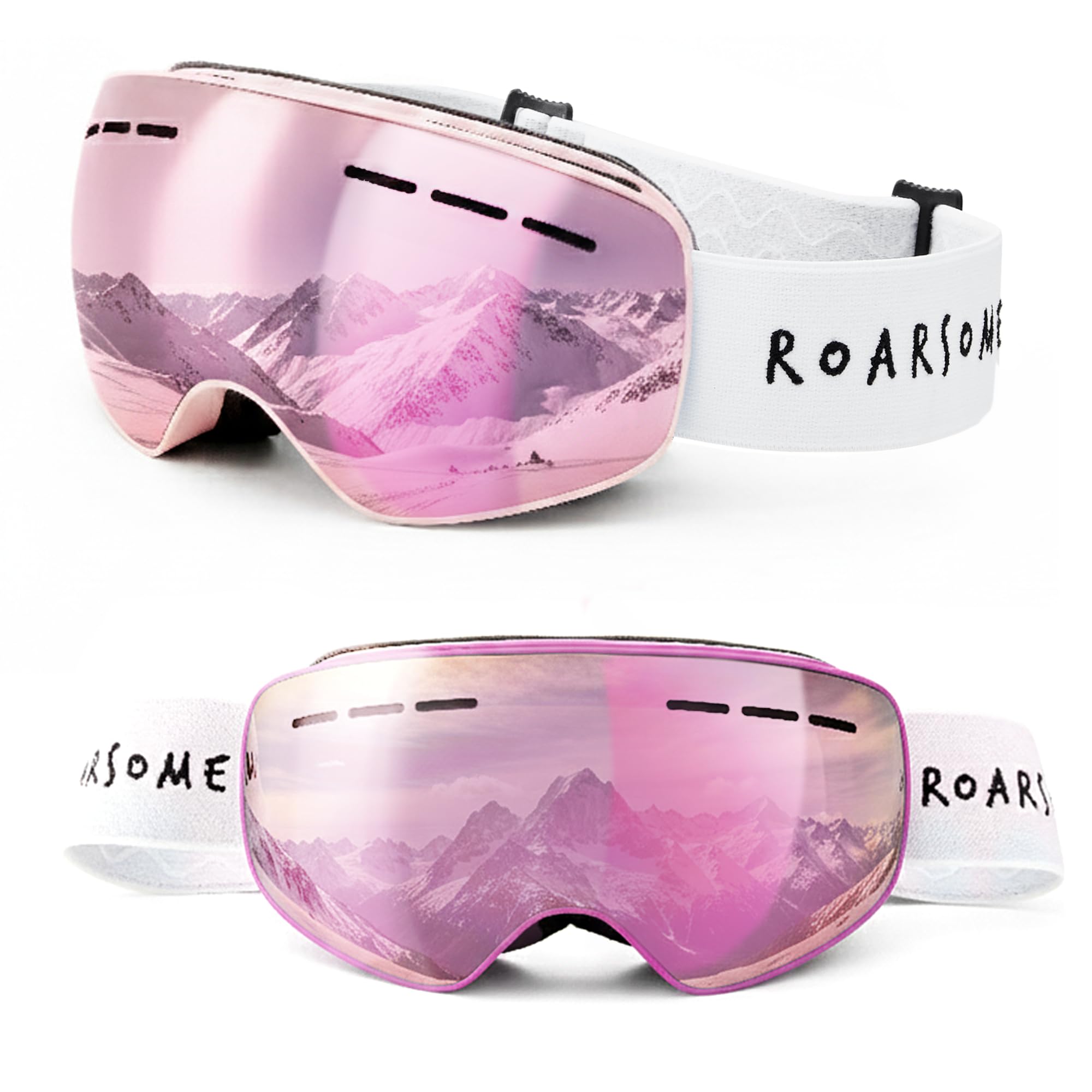 Roarsome Kids Ski Goggles – Anti-Fog Snowboard Goggles with UV Protection, OTG Design, and Adjustable Strap for Boys & Girls