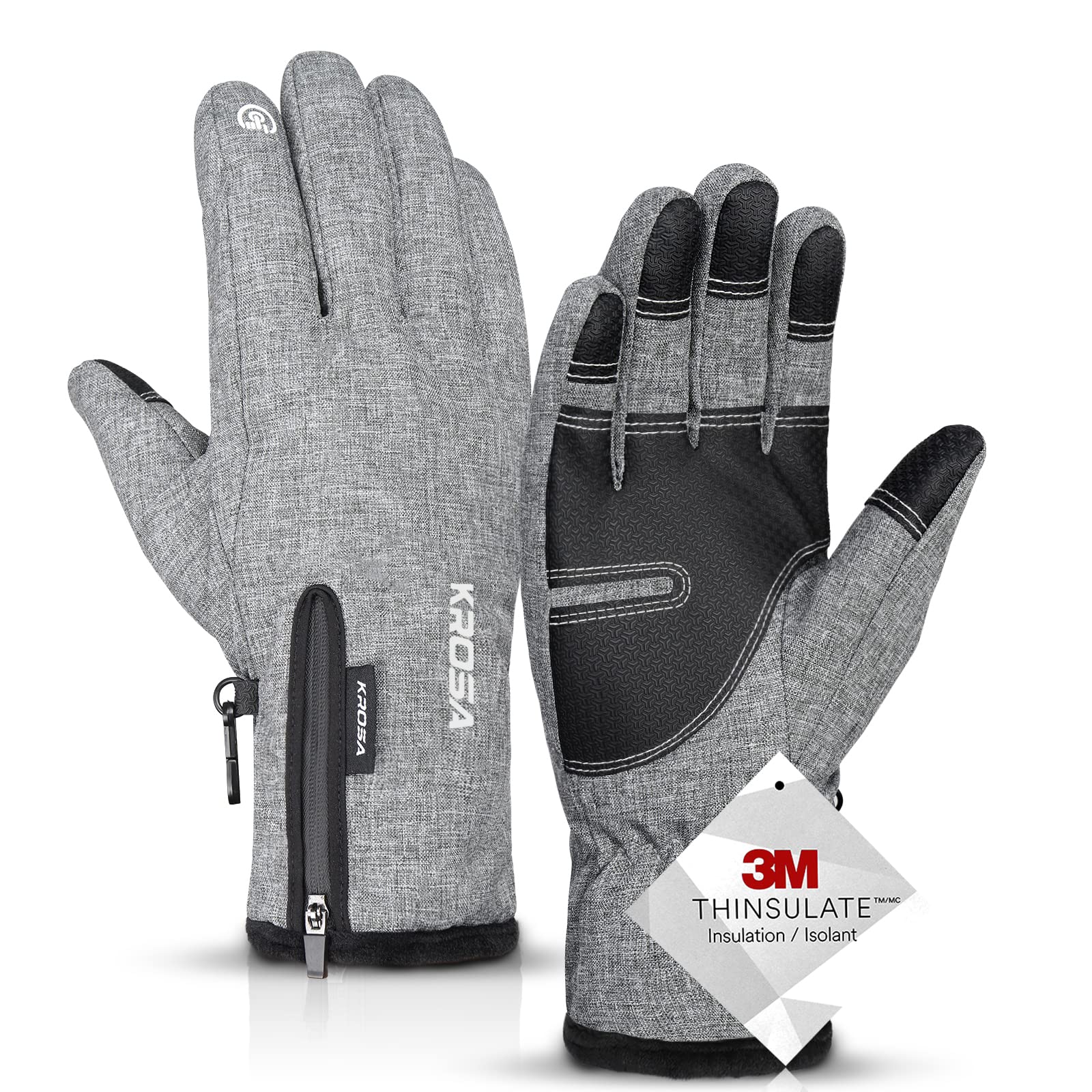 krosa 5-Layer Winter Gloves for Men & Women Made with 3M Thinsulate, -10℉ Waterproof Work Gloves for Cold Weather, Snow Ski Gloves with 10 Touchscreen