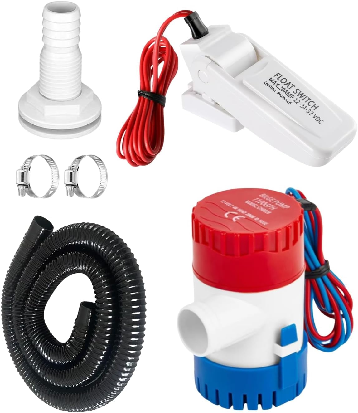 FengyingRise 1100GPH Bilge Pump with Float Switch & 1-1/8 Inch Hose Kit - High-Flow, Fully Submersible Pump, Automatic On/Off Switch, and Durable