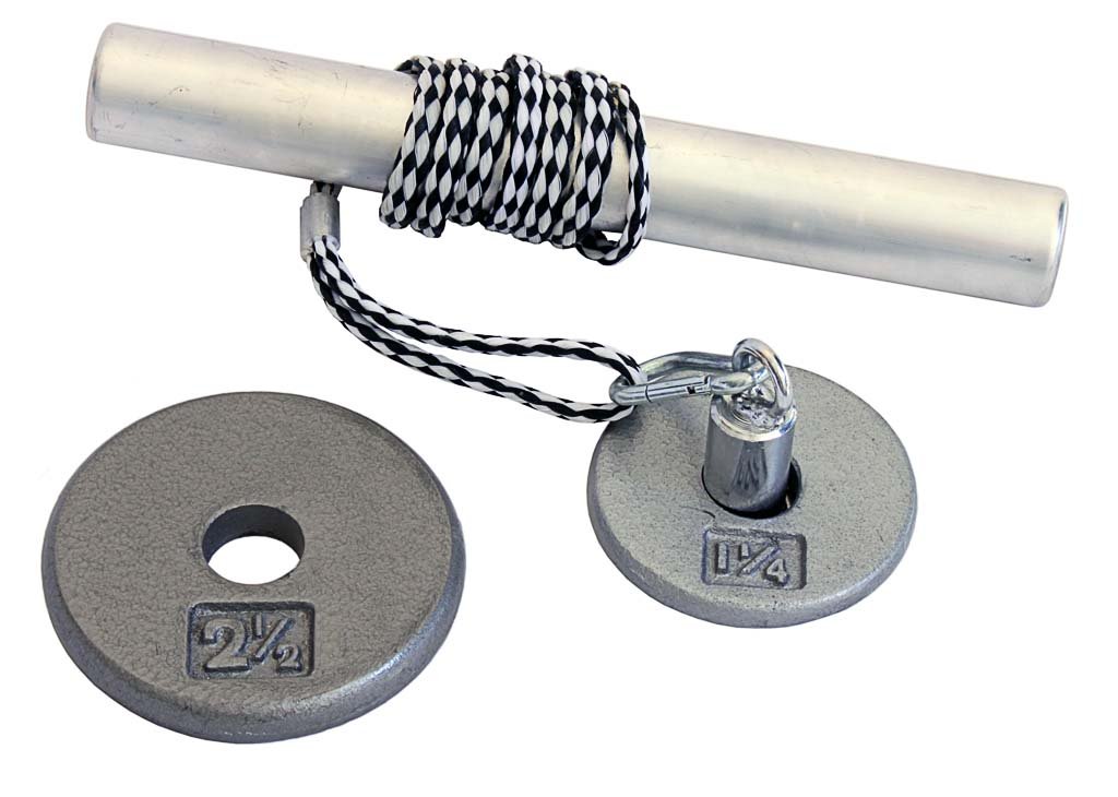Heavy duty 1.5" OD, 1.04" ID, diameter metal tube and steel weight holder with snap link. Includes: 1.25lb, and 2.5lb grey regular 1" plates Good for weight training, especially to maximize exercise on hands, wrists & shoulders. Excellent for rehab and therapy. Ships to all 50 States, APO, FPO, and