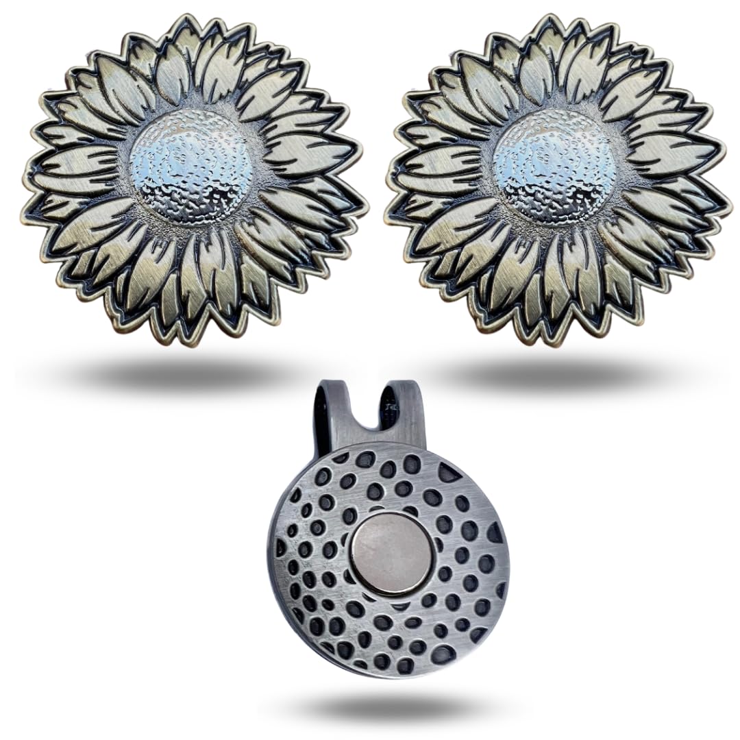 Full Metal Markers Sunflower Unique Magnetic Metal Golf Ball Marker Accessory with Hat Clip for Men and Women