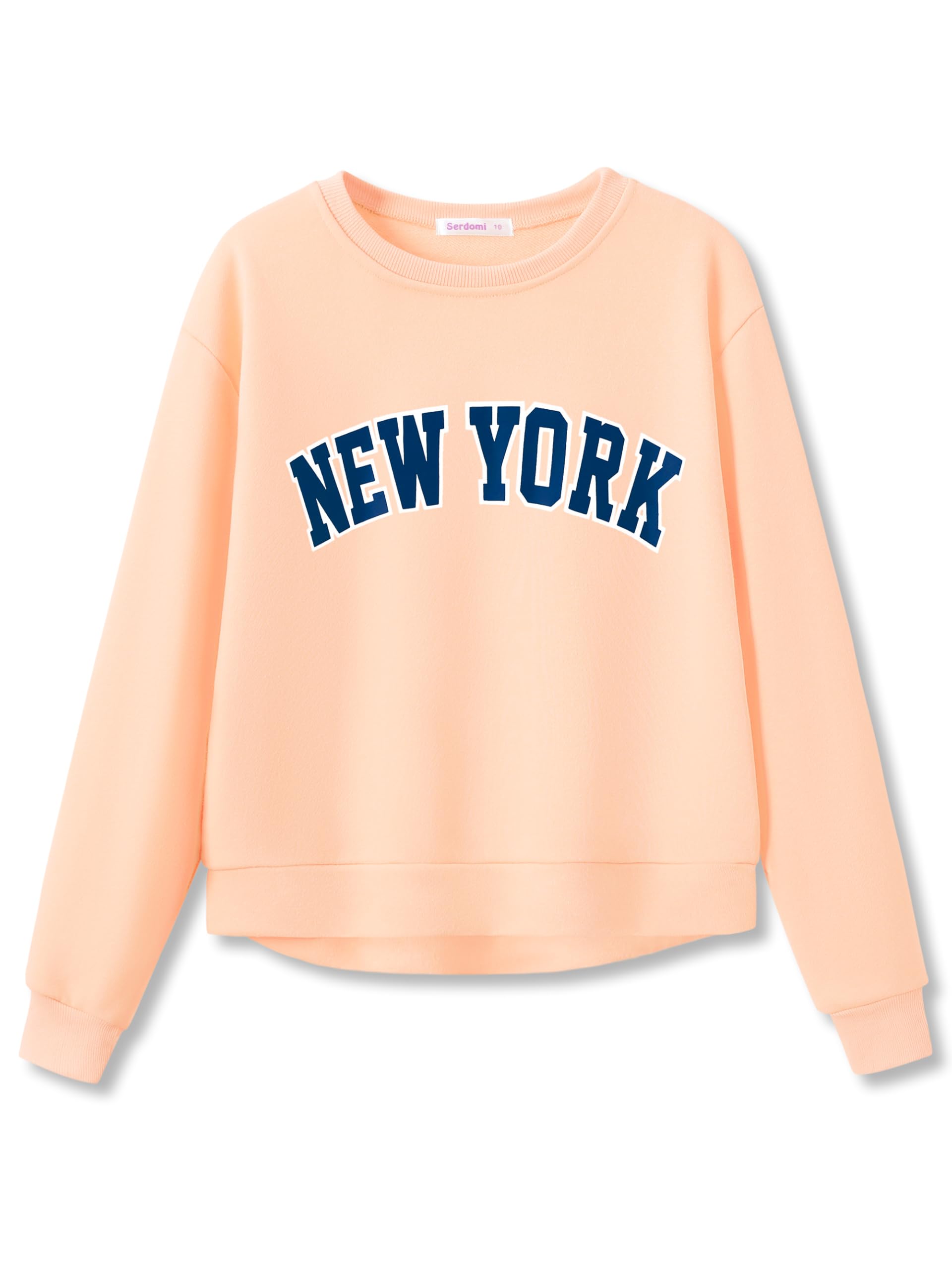 Features: These casual style girls sweatshirts feature trendy simple "NEW YORK" text on light peach color crop top, crew neck and long sleeve top design make it easily matched with any bottoms( jeans, skirts, sport joggers, pants...). This stylish pullover shirts is sure to become a favorite choice