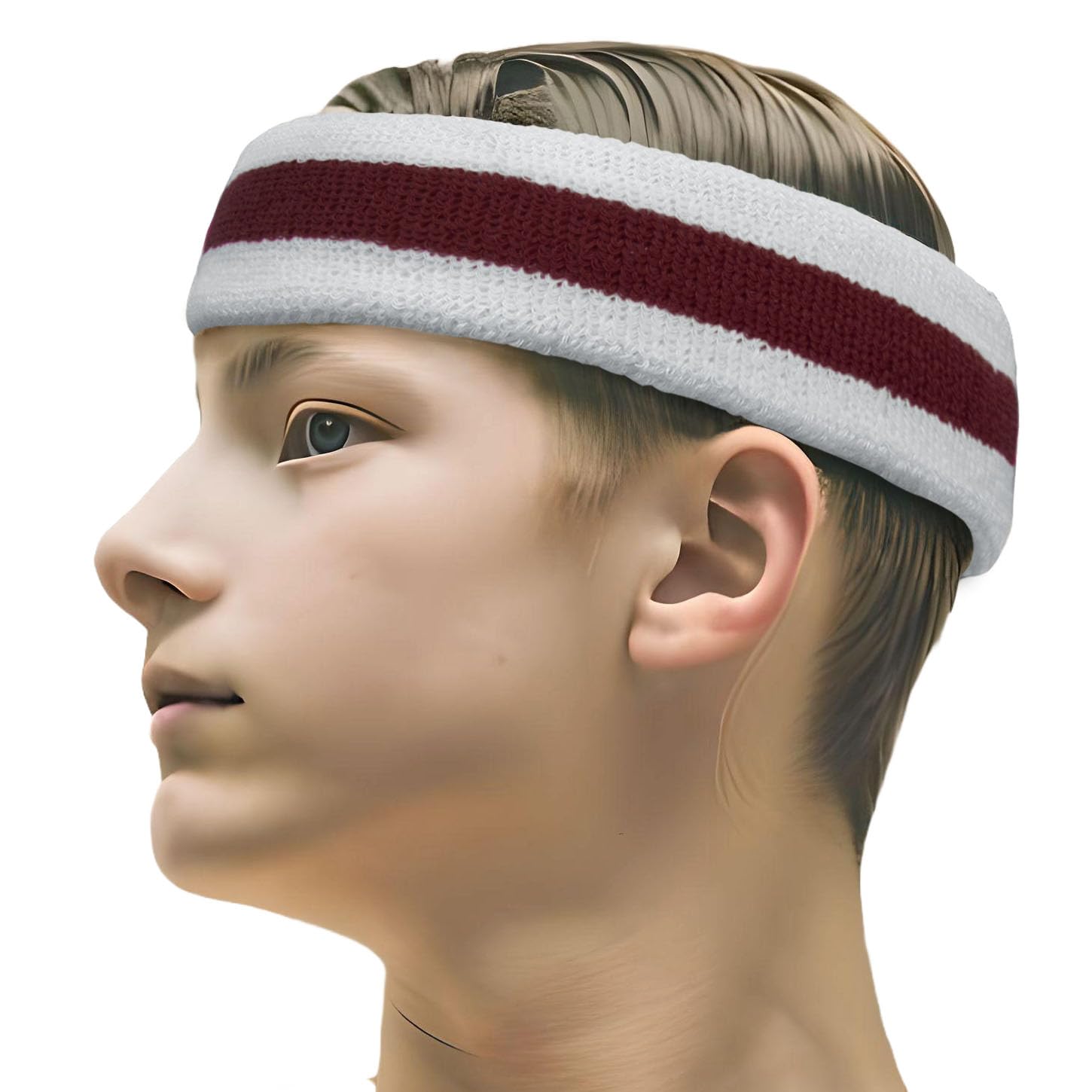 cotton Imported Headband Size: Length 6.7 inch, Width 2 inch. 1 unit includs 1 piece. Fiber contents: 85% Cotton, 8% Elastic, 7% Nylon. How to wash: machine wash and dry (Hand wash recommended) Style: Striped ; Comfortable; absorbent cotton terry ; Pretty Stretchable, Buy cotton athletic sweat headb