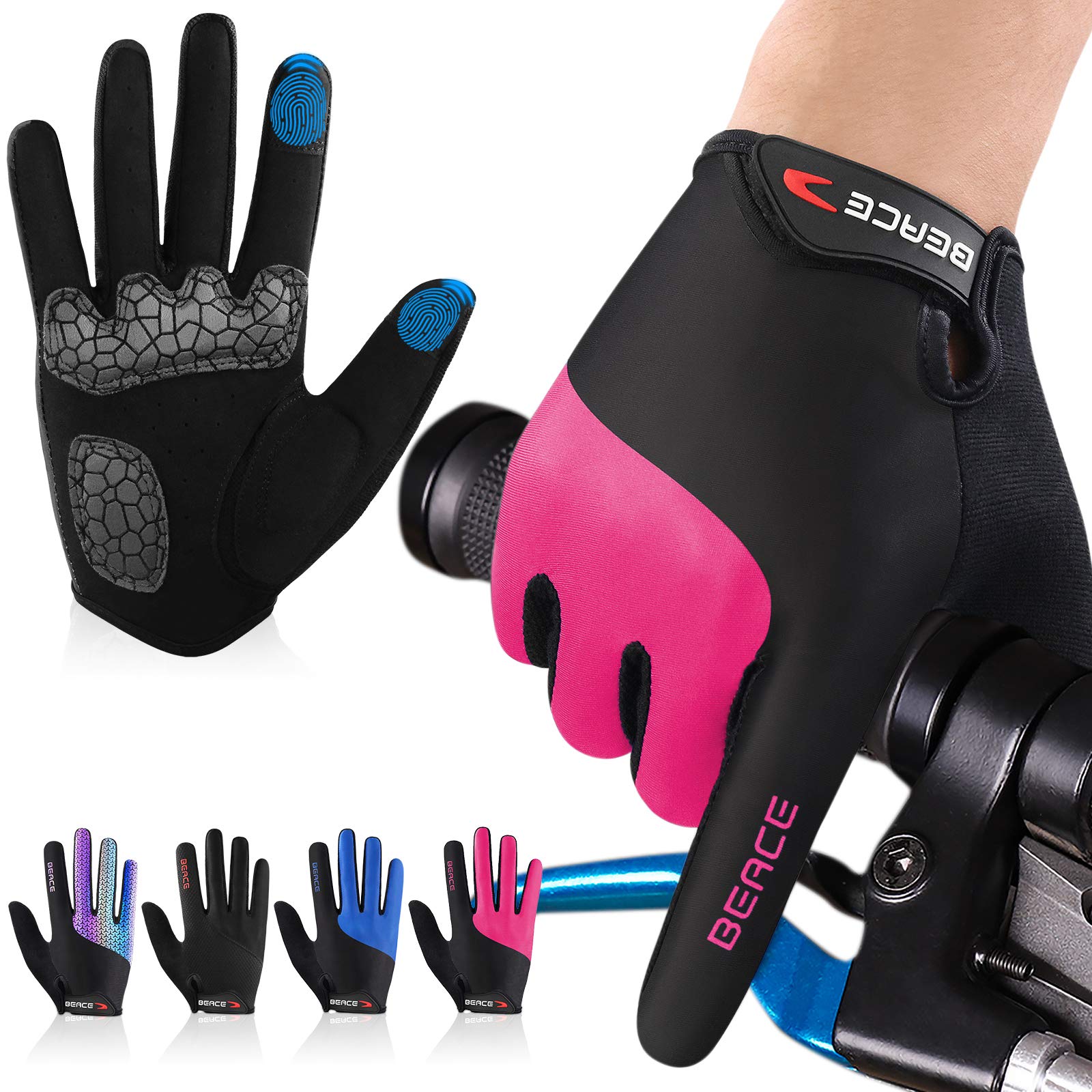 BEACE Cycling Bike Biking Gloves for Women(Colorful Night Glow) with Touch Screen-Full Finger Workout Road Mountain Bike Gloves Anti-Slip Silicone