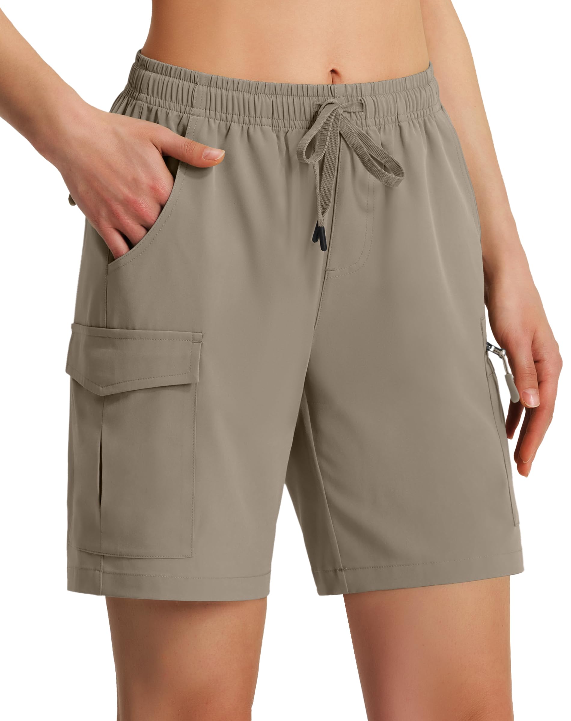 Ksmien Women's 7" Hiking Cargo Shorts Lightweight Quick Dry Ladies Summer Shorts with Zipper Pockets for Travel Golf