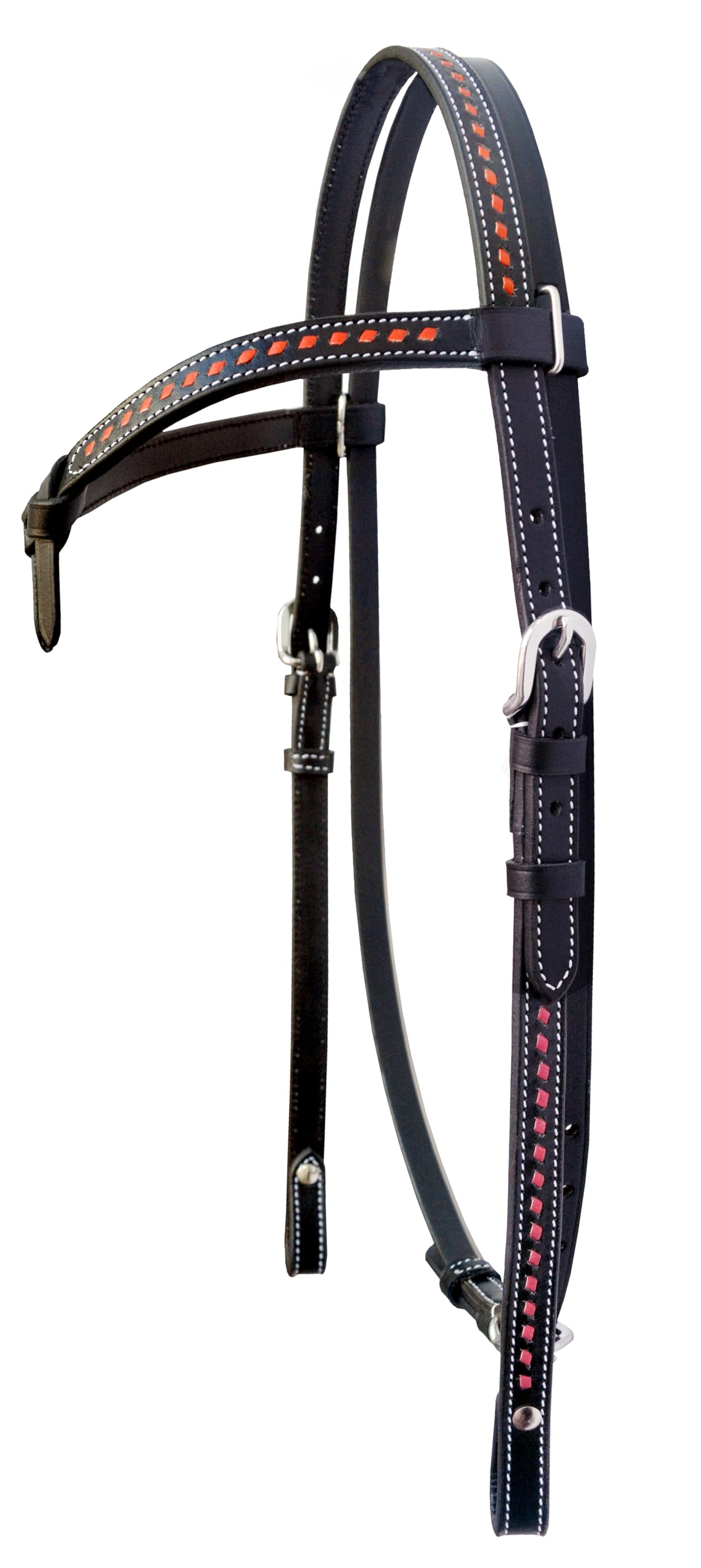 Western Horse Headstall Full Size – Adjustable Hand Braided Genuine Leather Bridle with Red Rawhide Leather Weaving on Straight Brow Band, Western
