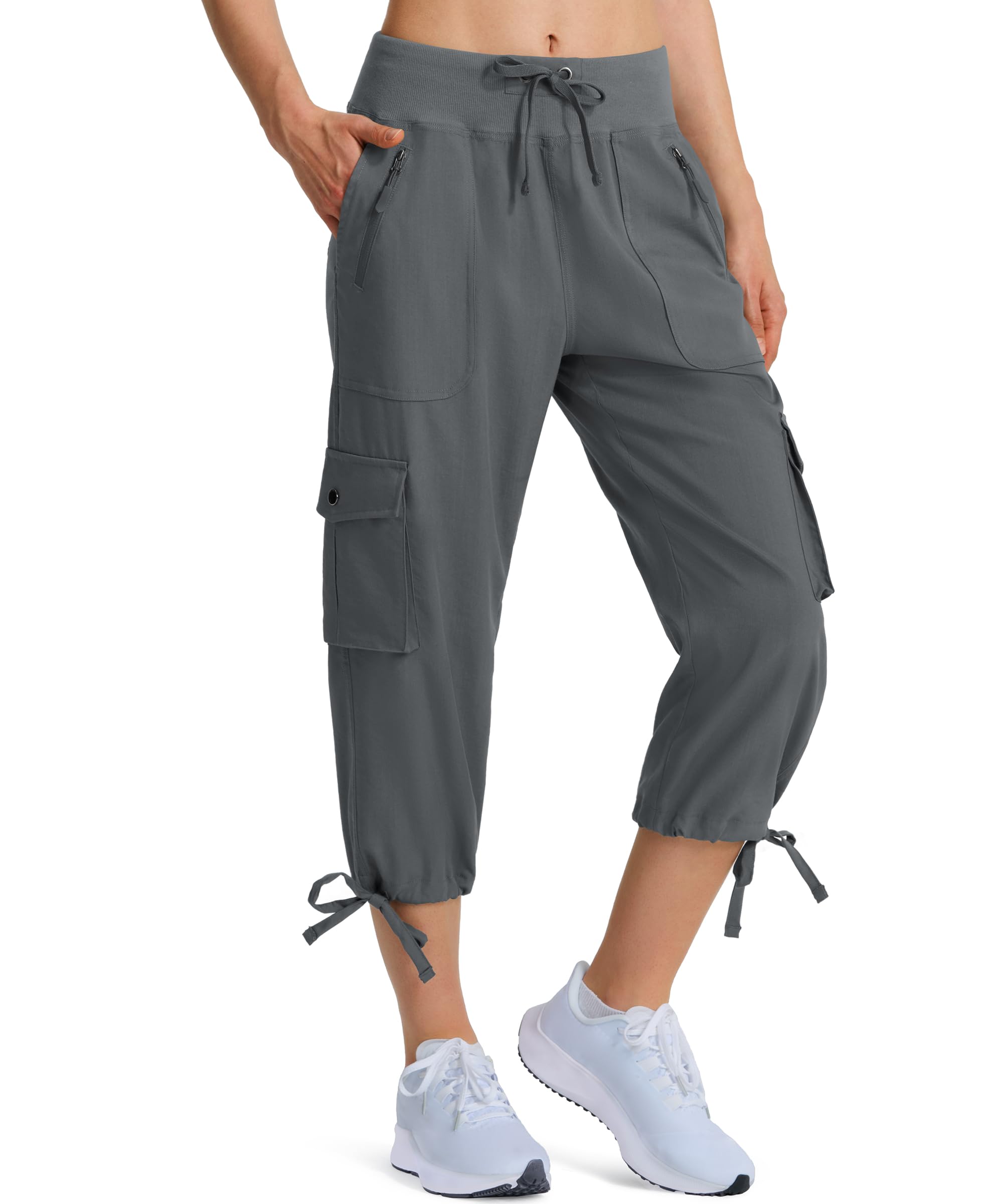 Lightweight & Soft Fabric: The women's hiking cargo shorts well made of high quality soft fabric, moisture wicking and breathable for a full range of motion, lightweight and skin touch, make you feel cool and fresh all day Elastic Waistband with Drawstring: These Women's lightweight capris with elas