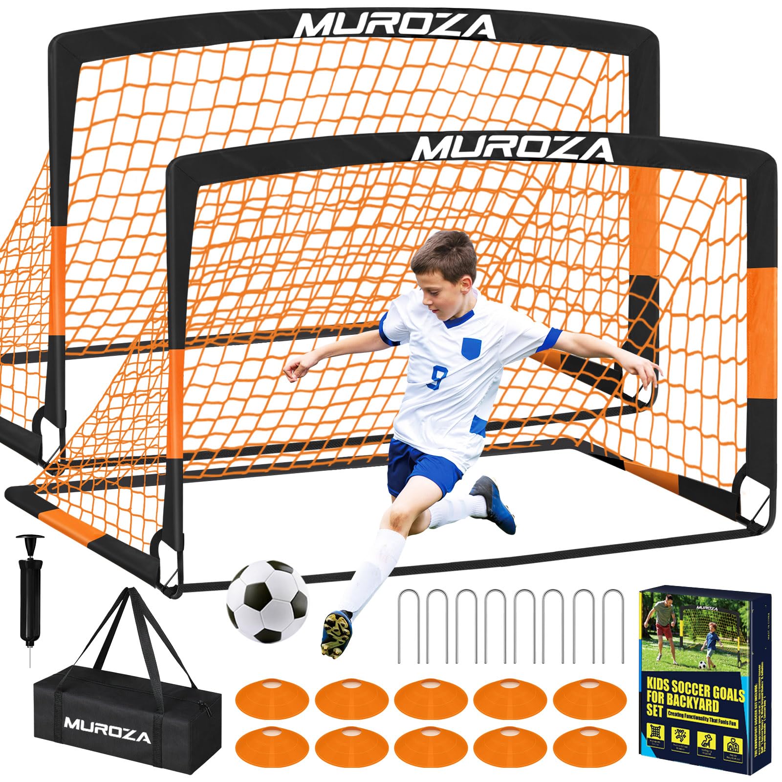Soccer Goal, Kids Soccer Goals for Backyard Set, 2 Pack of Portable Pop Up Soccer Net with Soccer Ball, Cones, Complete Training Equipment for Youth,