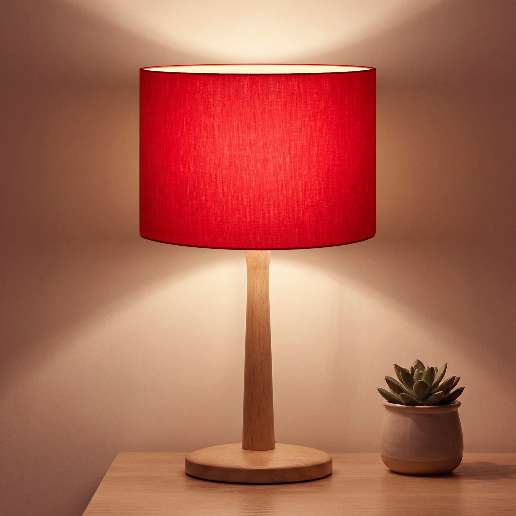 16.3 in. Modern Natural Wood Table Lamp with Linen Fabric Shade