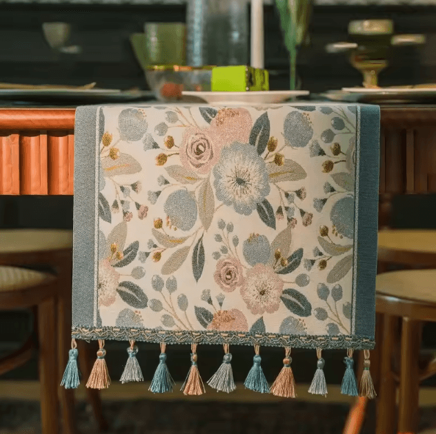 Bring effortless elegance to your table with this beautifully detailed blue floral table runner inspired by the timeless charm of dahlia blooms. Designed to brighten any space, this dahlia table runner adds a soft, refreshing touch that works...