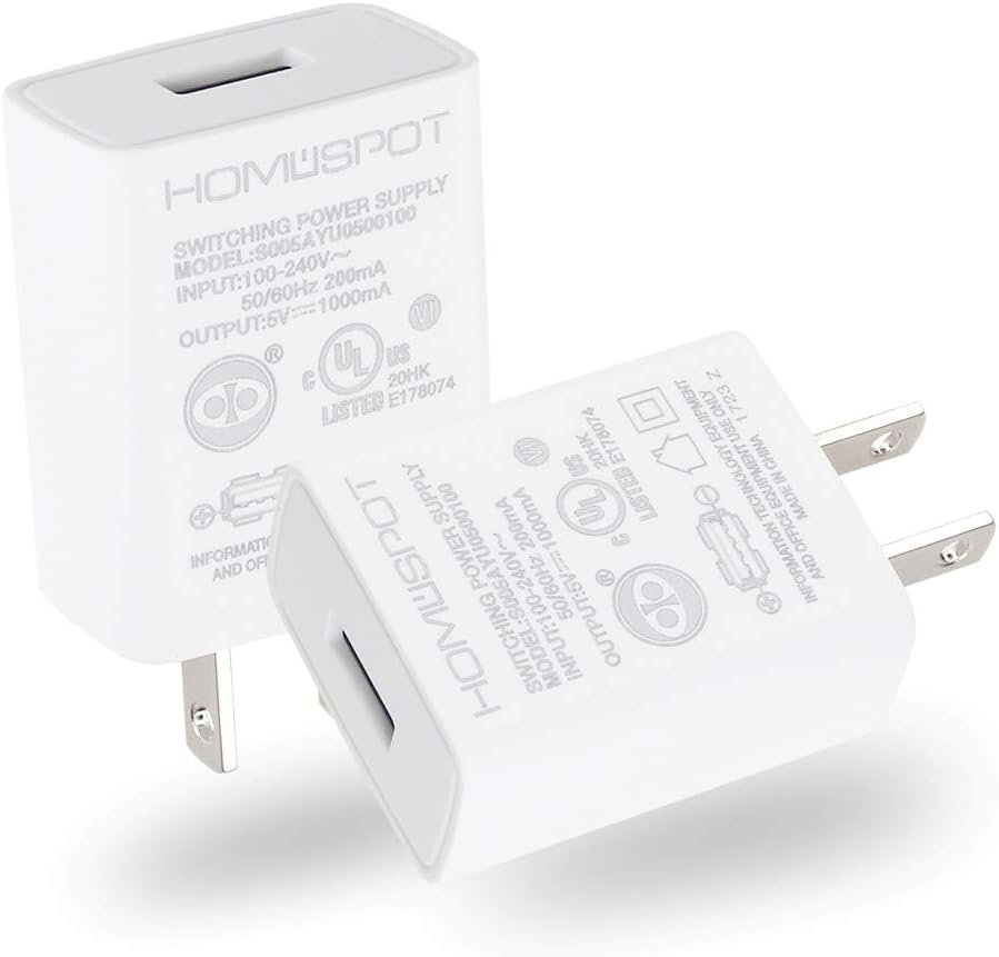 HomeSpot UL-Listed Universal US 5V1A USB Wall Charger Plug in-Door Power AC Adapter for Travel Office Home Use - 2 Pack White