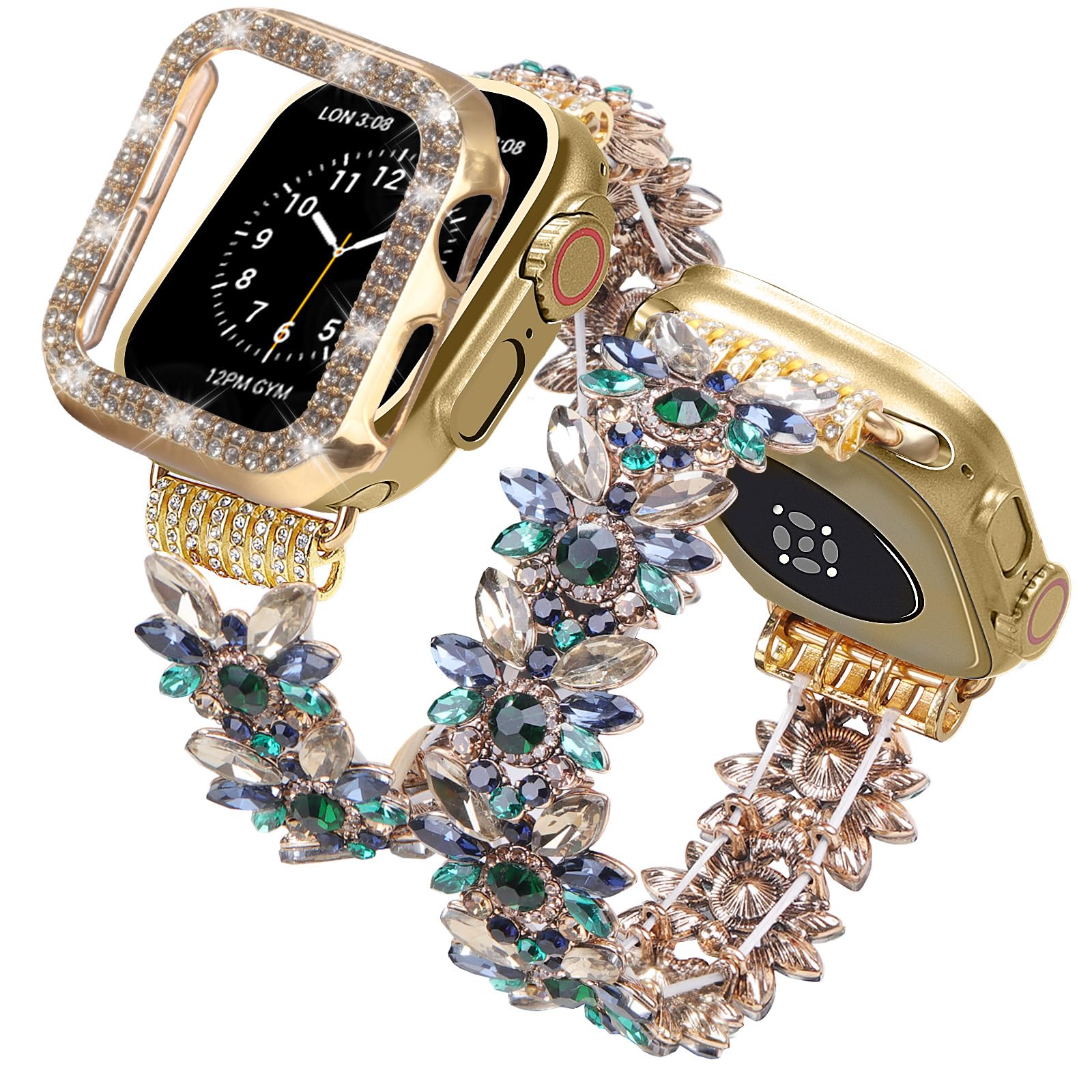 VIQIV Bling Dressy Bracelet with Case Compatible with Apple Watch Bands 38mm 40mm 41mm 42mm 44mm 45mm 49mm for Women Girls Strethy, Slim Jewelry