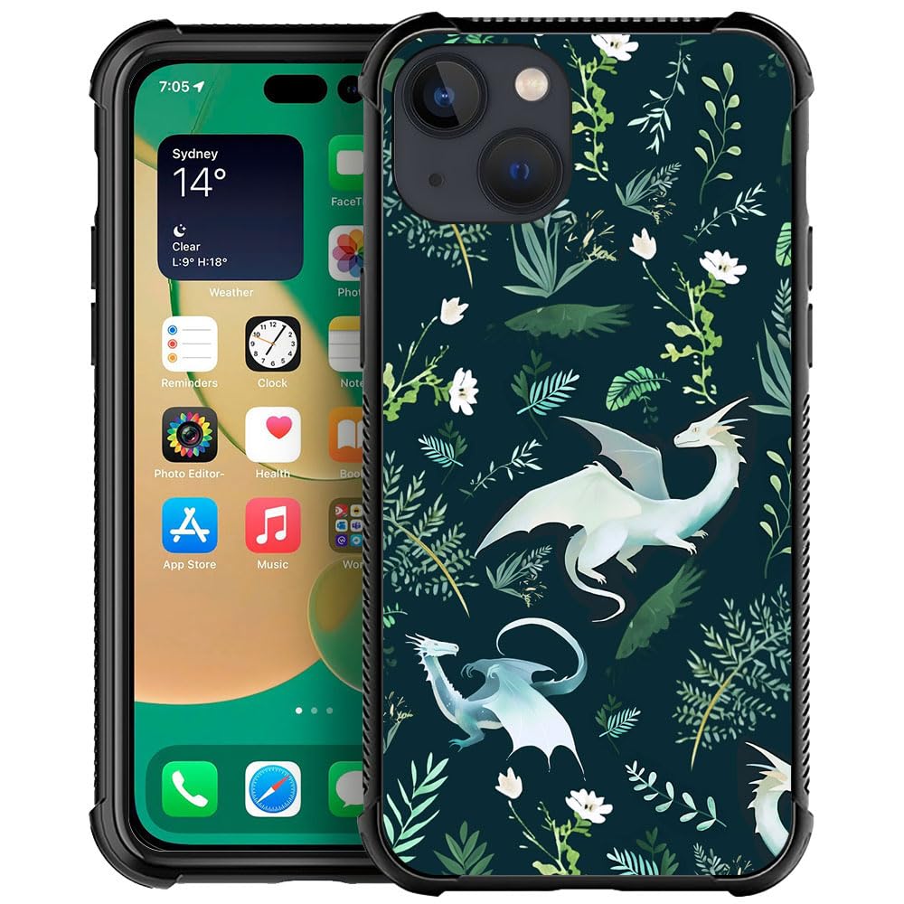 YiXinBB Compatible with iPhone 13 Mini,H Green Leaf Dragon Pattern Design,H Scratch and Shock Resistant Rugged TPU Protective Case for iPhone 13 Mini