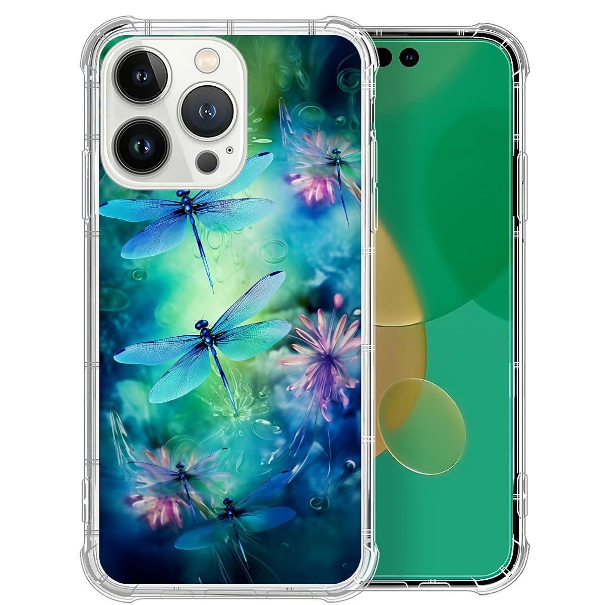 FKBRCL4U for iPhone 13 Pro Max Case,Clear Blue Green Dragonfly Pattern Graphic for Girl Women Soft Silicone Shock Protection for iPhone 13 Pro Max