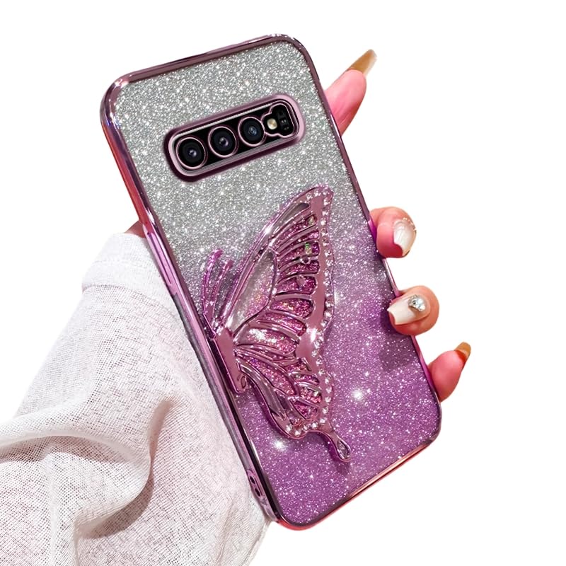 Soft Silicone Case for Samsung Galaxy S10 Cover, Luxury Electroplated Glitter Gradient Bling Quicksand Butterfly Protection Cover for Women Girls
