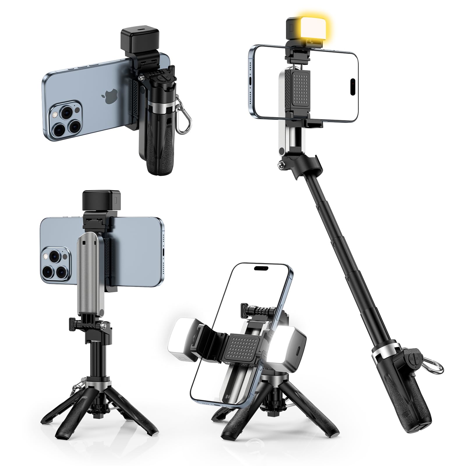 Pocket-Sized 3-in-1 Design with Integrated Fill Light & Zoom: The CloudValley PocketFlex Mini Tripod is your ultimate mini selfie stick tripod and phone stand, combining a handheld mini selfie stick, desktop tripod, and phone grip in one ultra-portable, pocket-size device. Now featuring an integrate