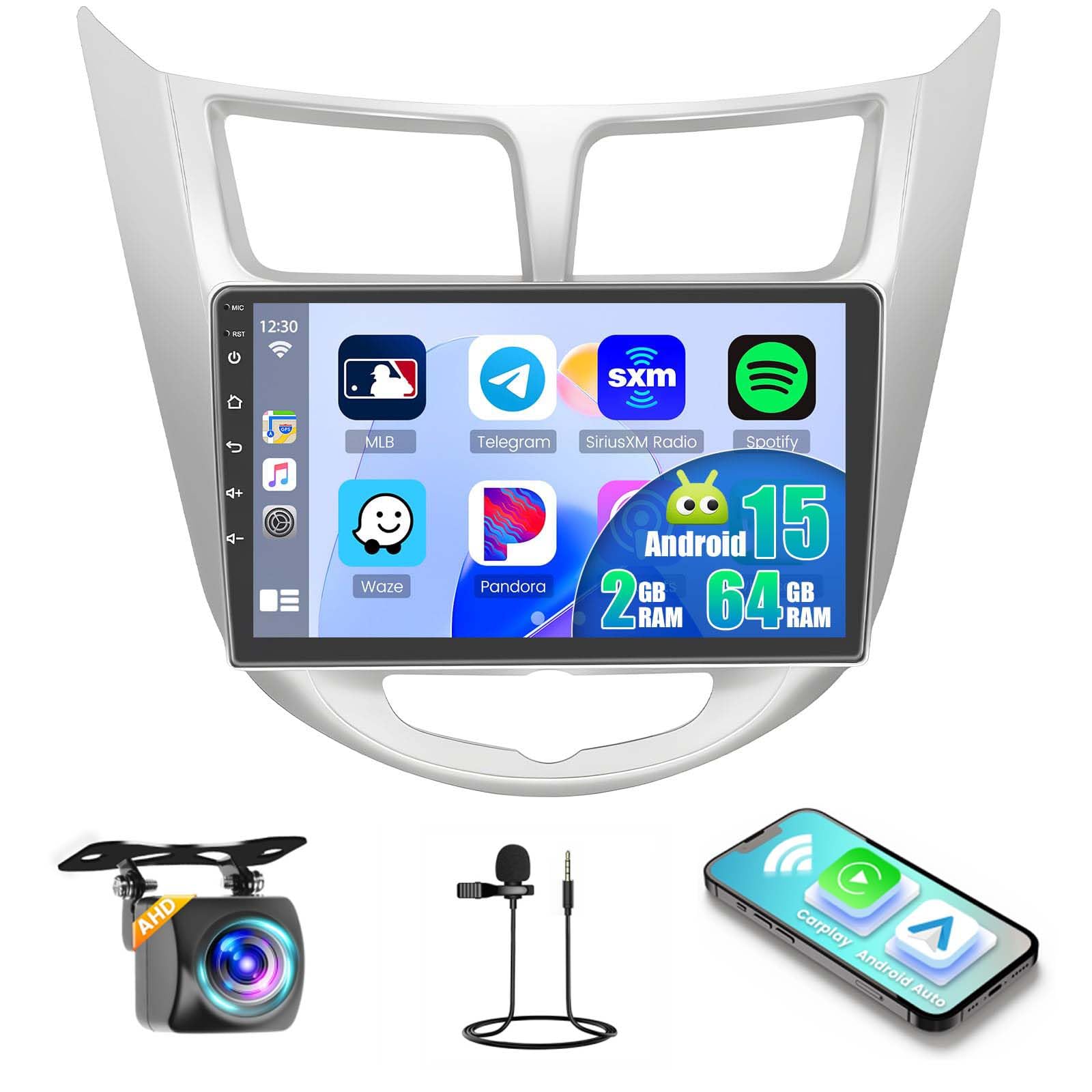 2+64G for 2010-2016 Hyundai Accent Verna Solaris Android 15 Car Stereo Wireless Apple CarPlay Android Auto,9 inch Touch Screen Radio WiFi Bluetooth