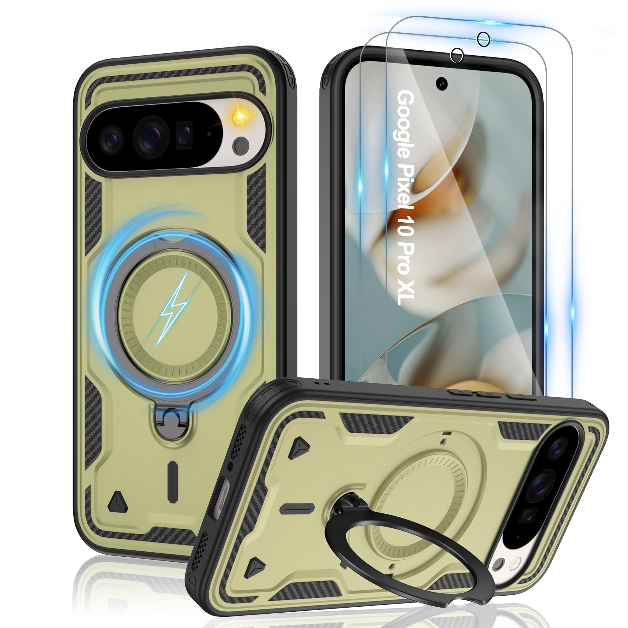 Gritup fro Google Pixel 10 Pro XL Case | Military-Grade Magnetic Protective Cover Compatible with Mag-Safe, 2-Pack HD Screen Protectors, Rotating