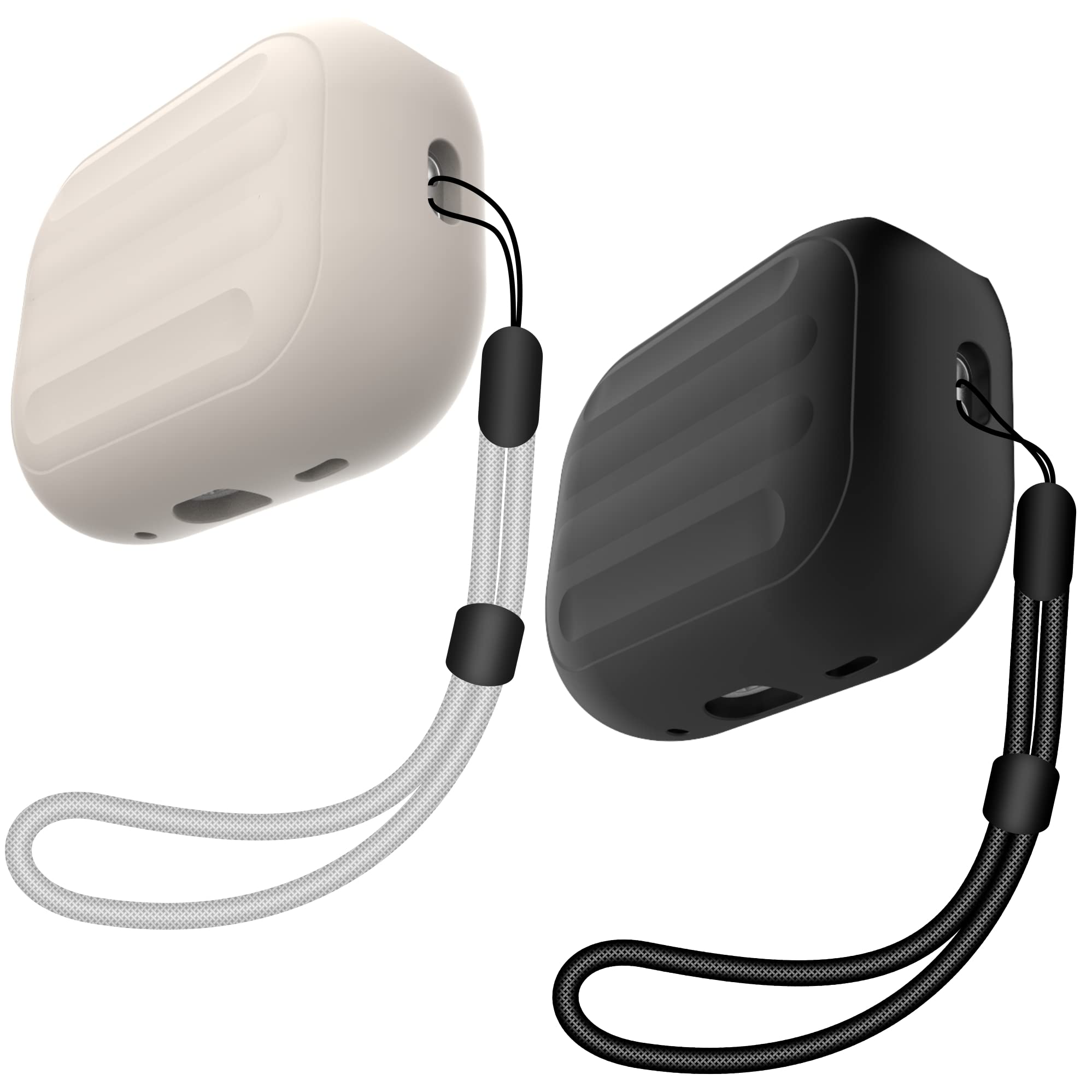 Anti-Lost Case Compatible with Airpods Pro 2,Wireless Charging, LED Visible,Lanyard Included. (Black-Beige)