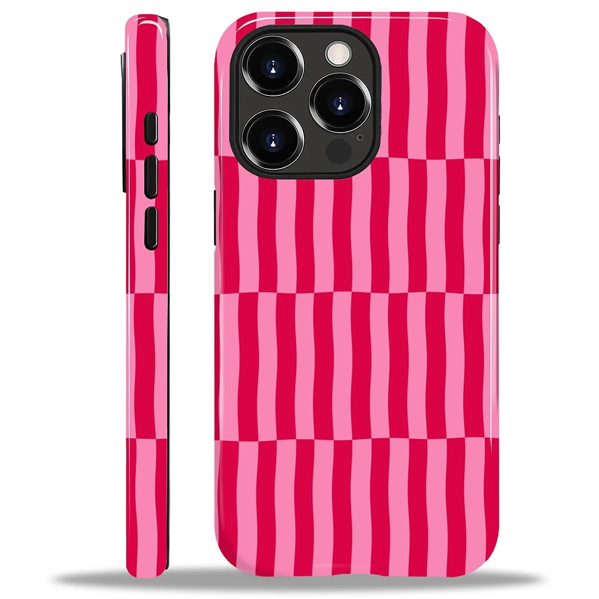 ilikediy for iPhone 15 Pro Max Case,HL2 Plaid Stripes Red Pink Hybrid 2 Layer Hard Shell Silicone Protective Pattern Design Case