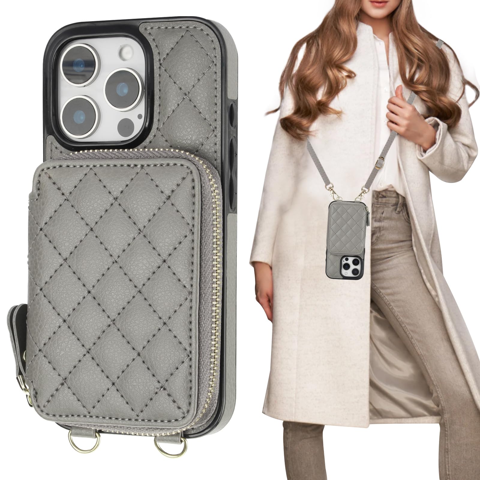 Bocasal Crossbody Wallet Case for iPhone 16 Pro, RFID Blocking PU Leather Zipper Handbag Purse Flip Cover, Kickstand Folio Case with Card Slots Holder