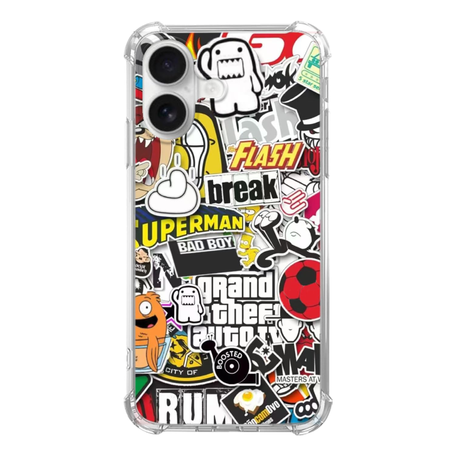 WidofvSpky Fashion Pop-Art Collage Case for iPhone 16, Colorful Cool Stickers Case Compatible with iPhone 16 for Boys Girls and Women, Unique Trendy