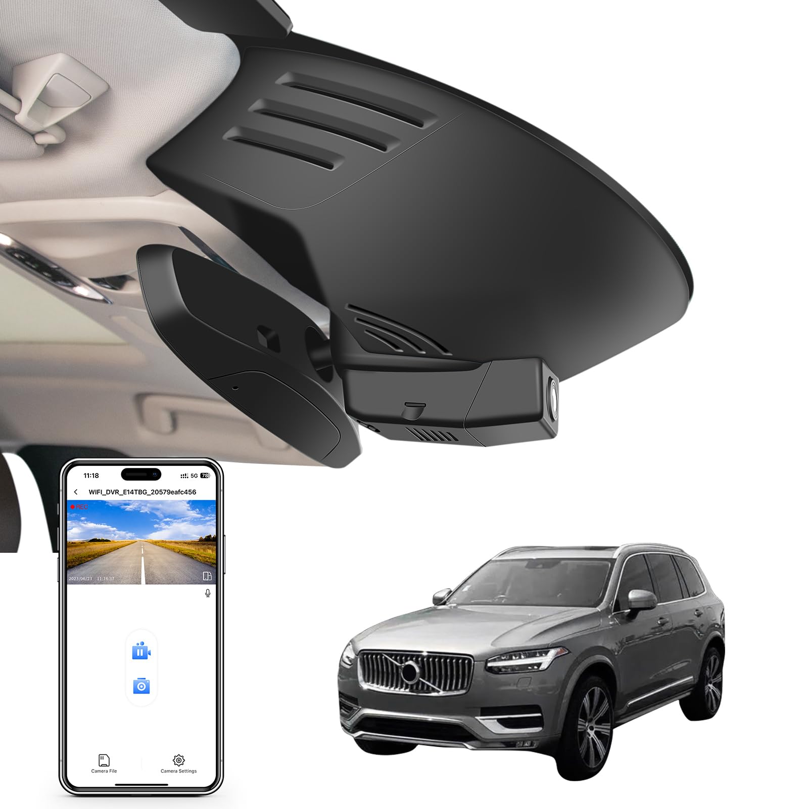 Mangoal 4K Dash Cam Custom for Volvo XC90 2016 2017 2018 2019 2020 2021 2022 (Model A),T5 T6 T8,Integrated OEM Look, UHD 2160P Video, WiFi & App,Loop