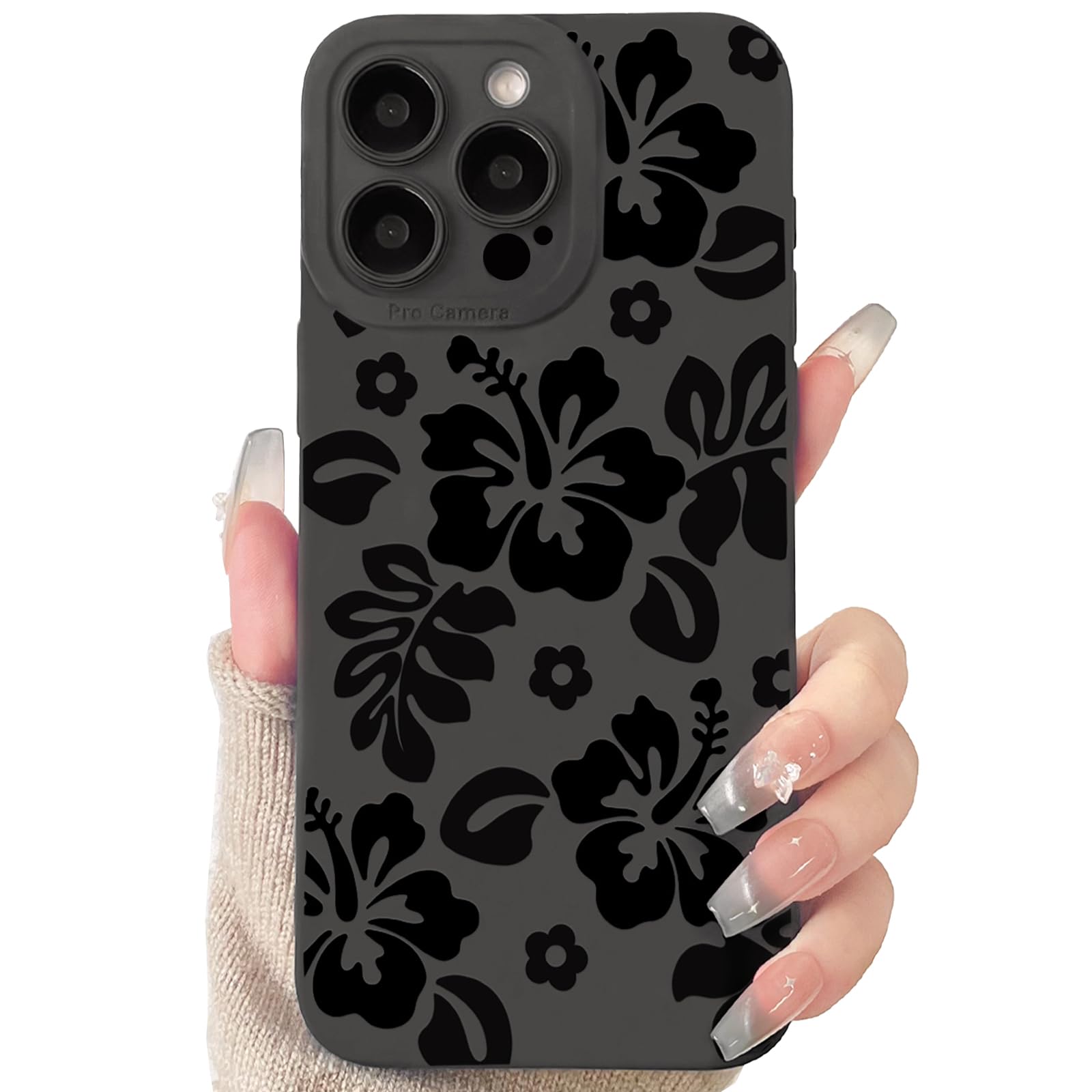 Lovmooful Compatible for iPhone 14 Pro Case Cute Cool Hibiscus Flower Floral Leaf with Black Design for Girls Women Soft TPU Shockproof Protective